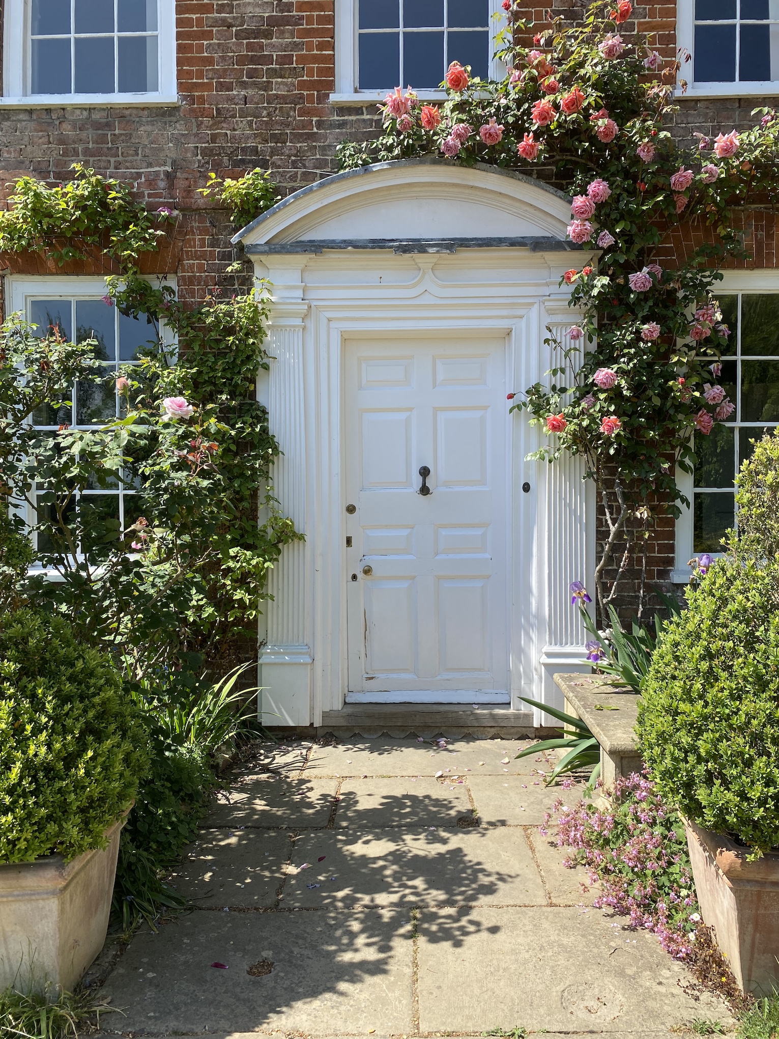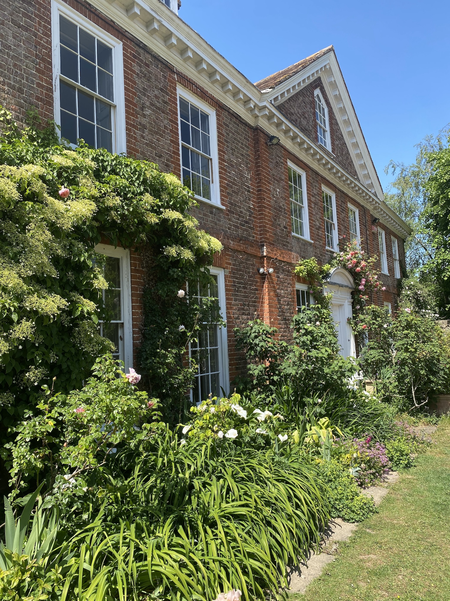 The property combines an elegant early-eighteenth-century Queen Anne façade with a sixteenth-century timber-framed rear wing, offering contrasting architectural styles and rich visual texture.