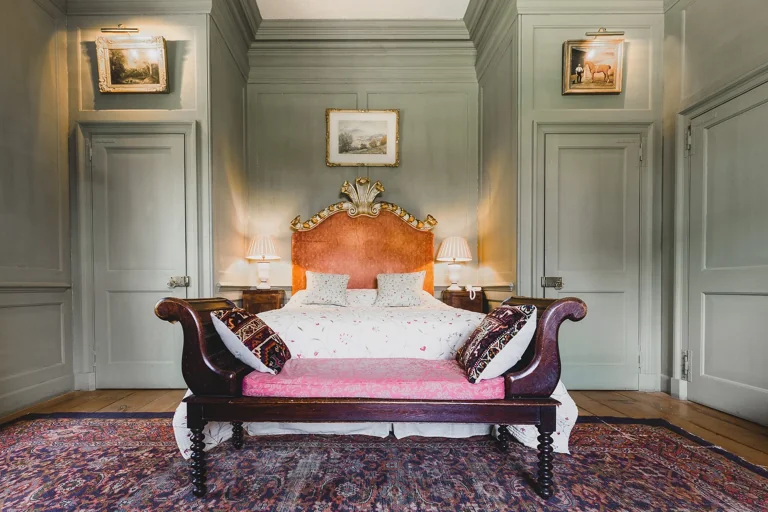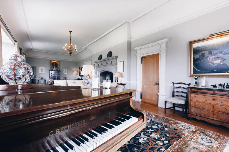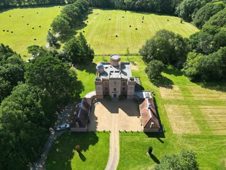 The house sits in 100 acres of parkland and is reached via a rolling drive that stretches through carefully managed meadows and mature trees. This meticulously designed property seamlessly blends classic and contemporary styles to create a truly unique backdrop.