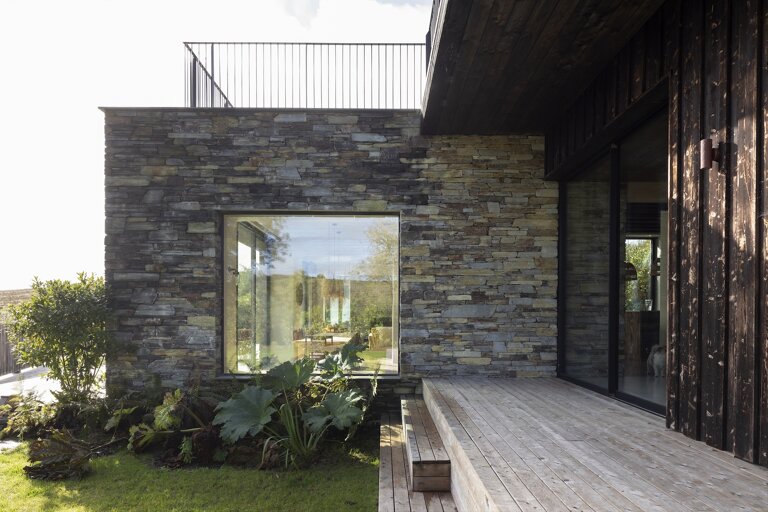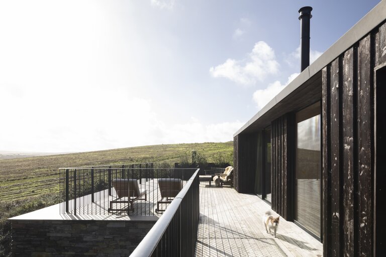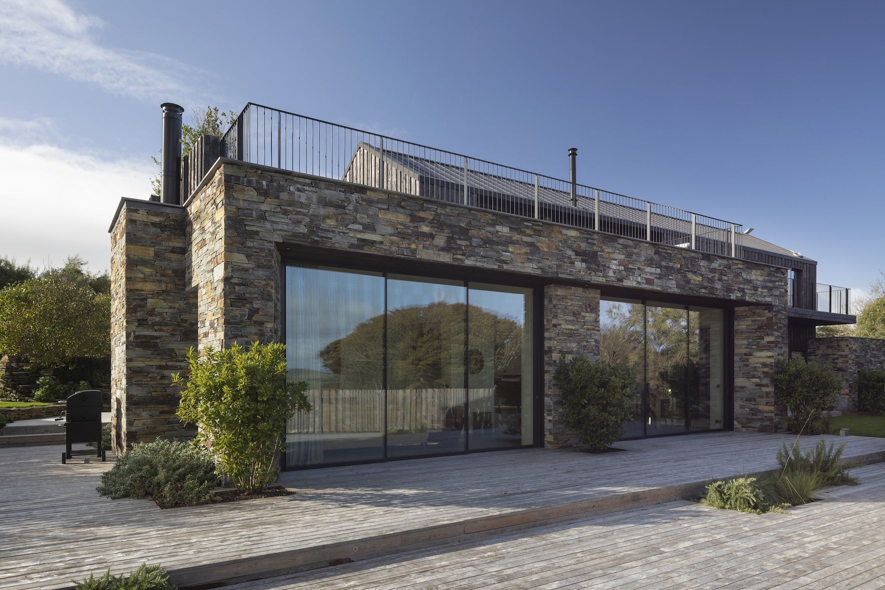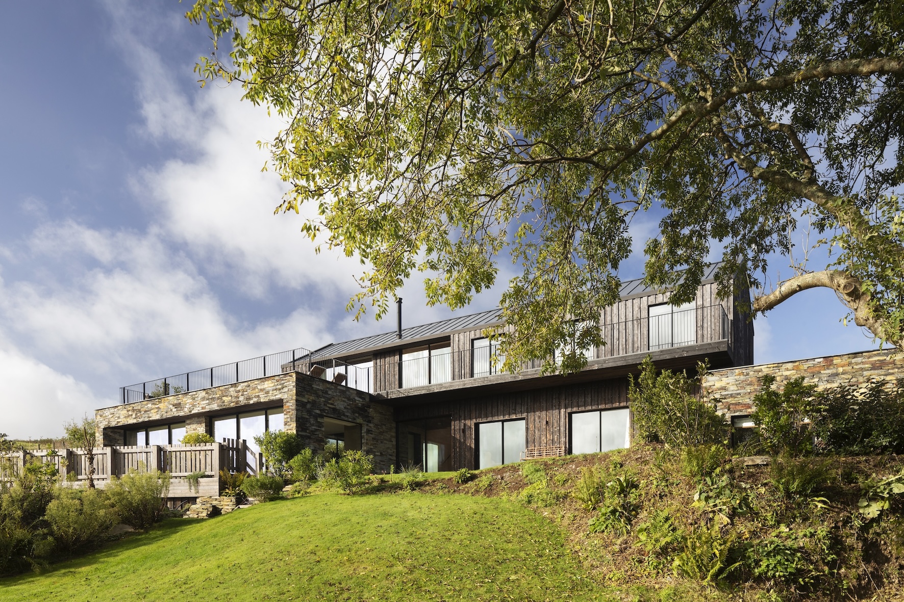 A contemporary coastal home is set within approximately three acres of private land, offering an elevated position with expansive estuary and moorland views.