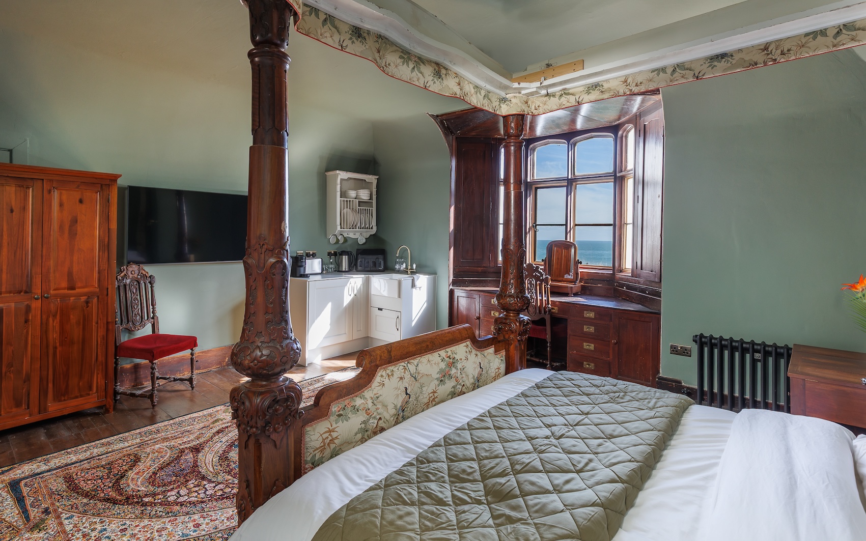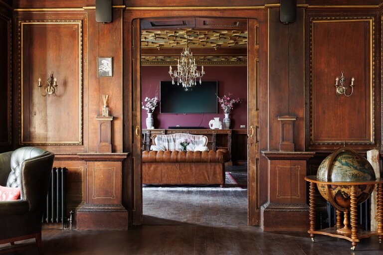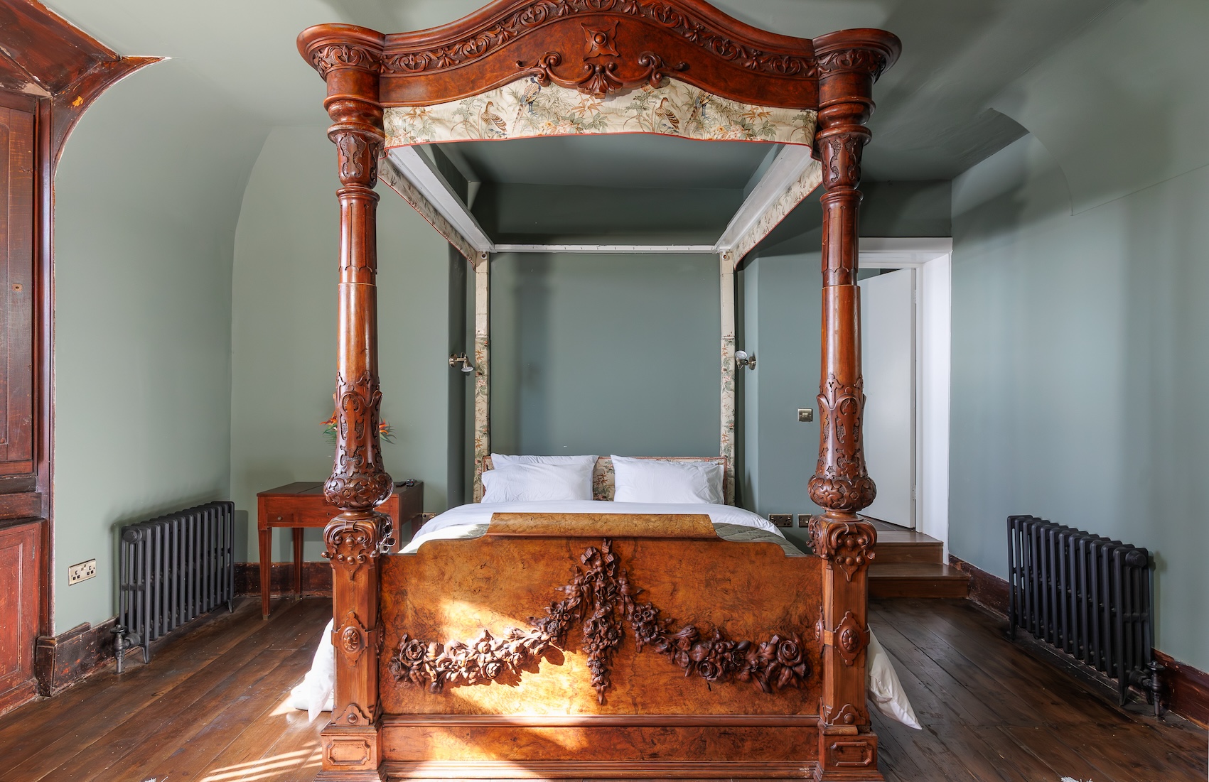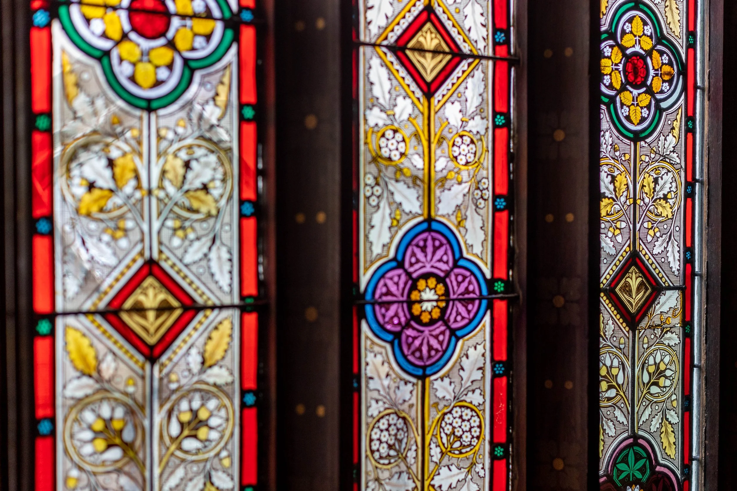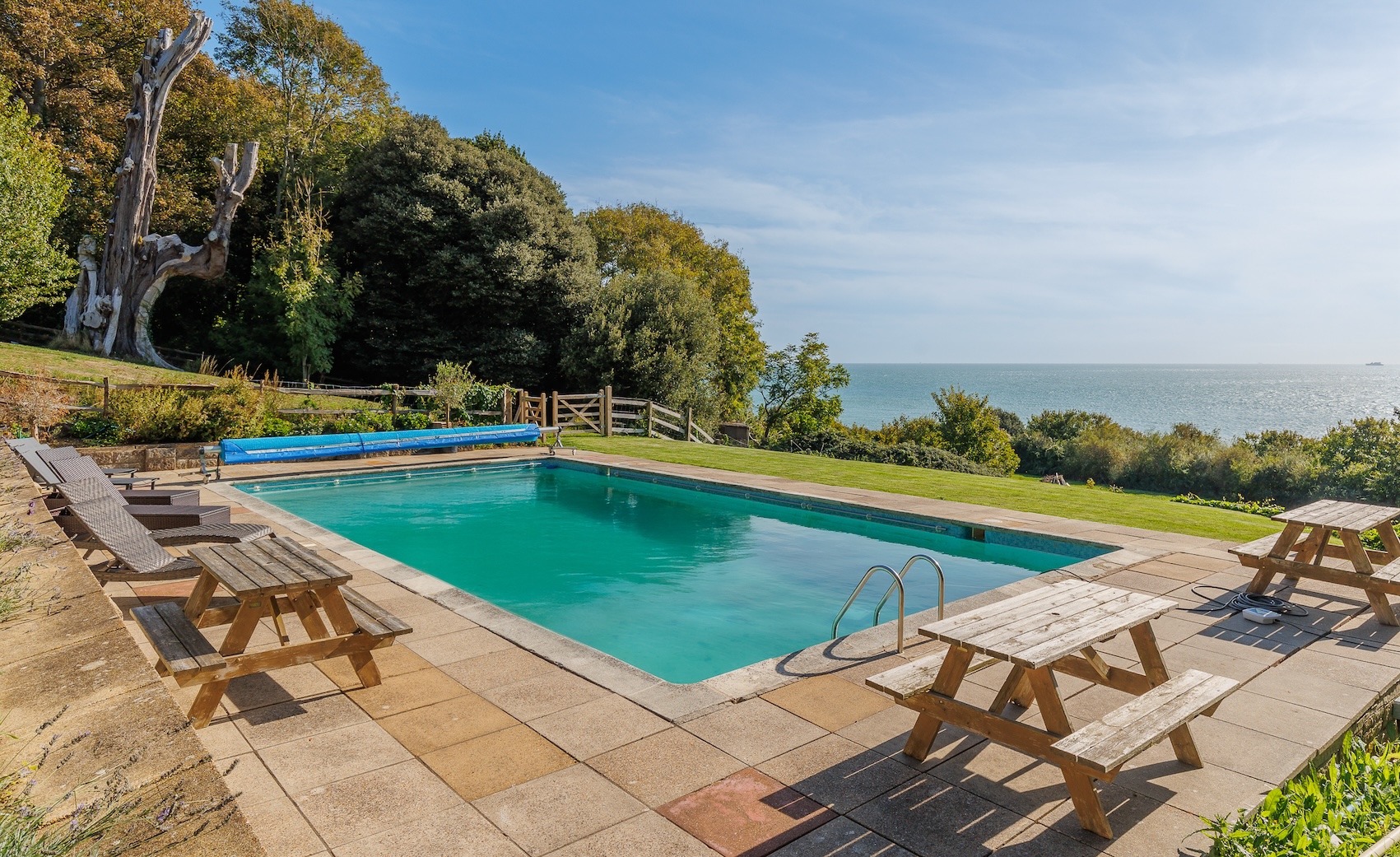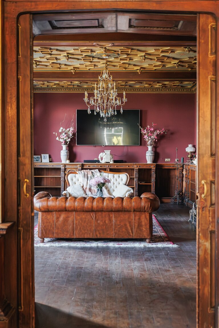 Built from rough-dressed stone, the house is south facing with large floor to ceiling bay windows, many with stained glass, that look down over the rolling lawn to the sea. There is a conservatory at the southeast corner, which faces a large cleared area which extends up to woodland. If you follow the lawns down past the old swimming pool to the bottom field there is a footpath that leads you to the beach at Monks Bay. Inside the property there are a host of original Victorian features which provide multiple backdrops to shoot. From original floorboards, carved and elaborately tiled fireplaces, wood-panelled walls, stained glass, large bay windows and beautifully painted ceilings.