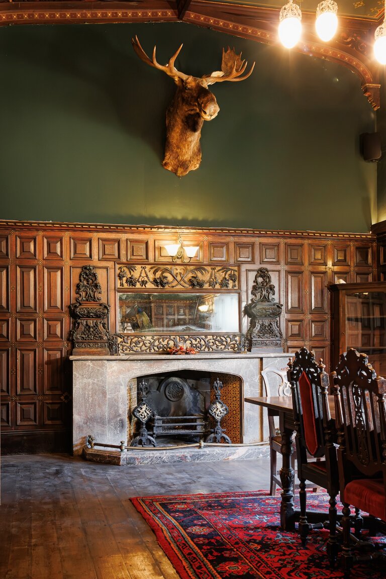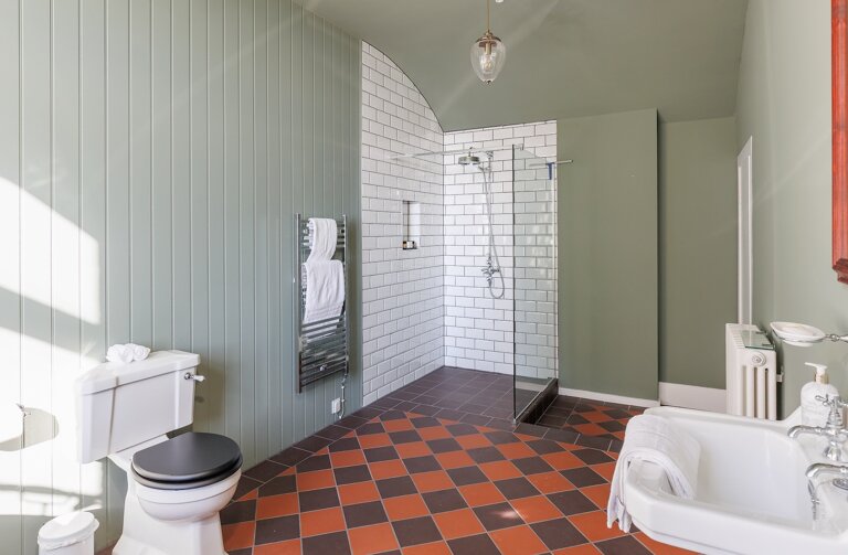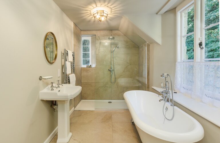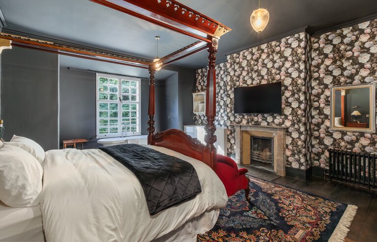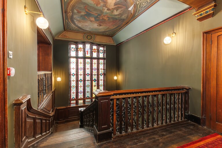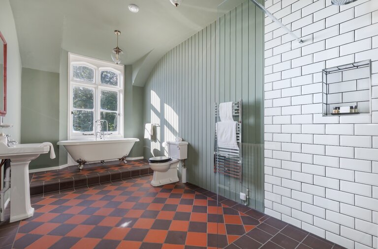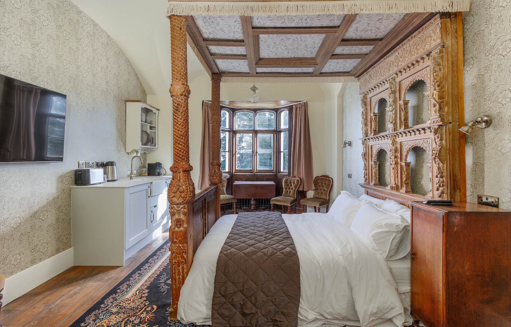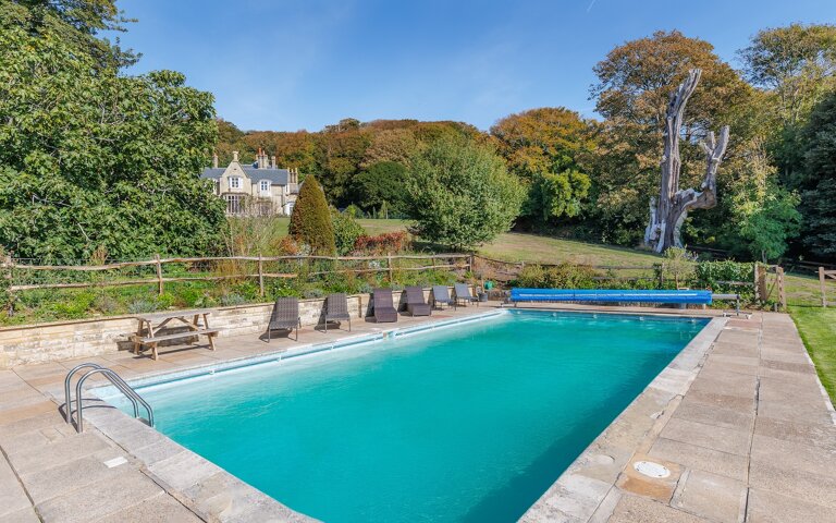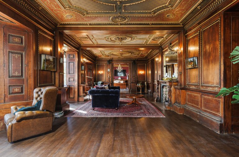 Built from rough-dressed stone, the house is south facing with large floor to ceiling bay windows, many with stained glass, that look down over the rolling lawn to the sea. There is a conservatory at the southeast corner, which faces a large cleared area which extends up to woodland. If you follow the lawns down past the old swimming pool to the bottom field there is a footpath that leads you to the beach at Monks Bay. Inside the property there are a host of original Victorian features which provide multiple backdrops to shoot. From original floorboards, carved and elaborately tiled fireplaces, wood-panelled walls, stained glass, large bay windows and beautifully painted ceilings.