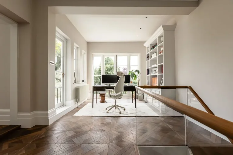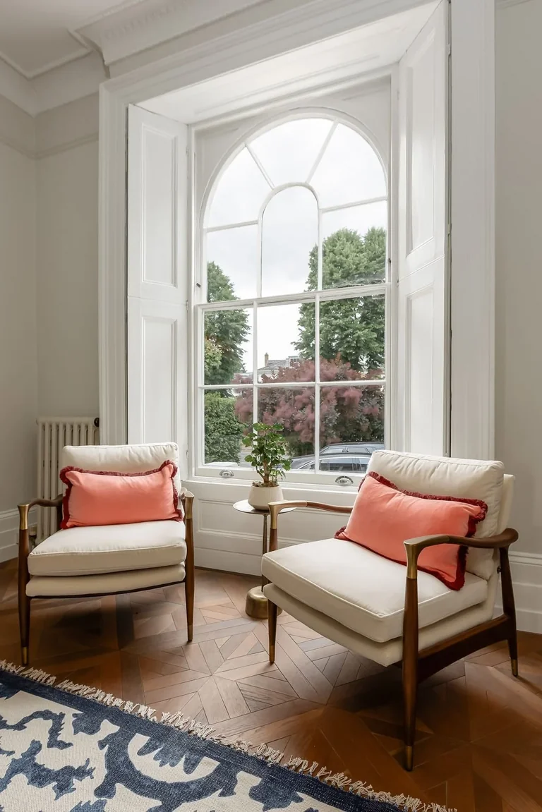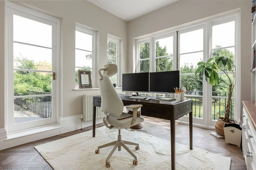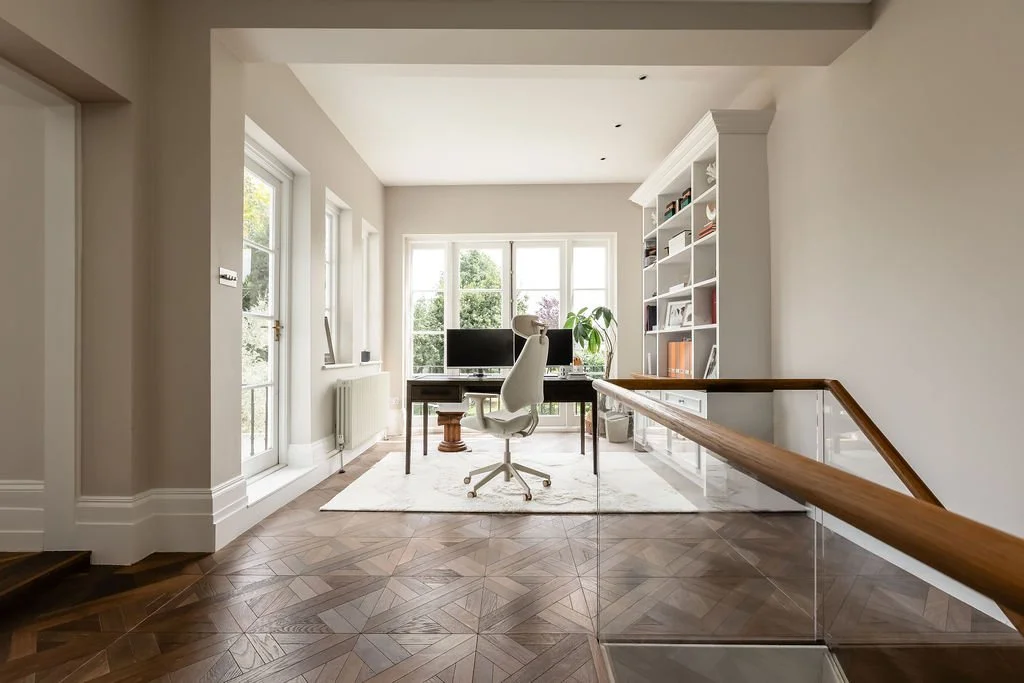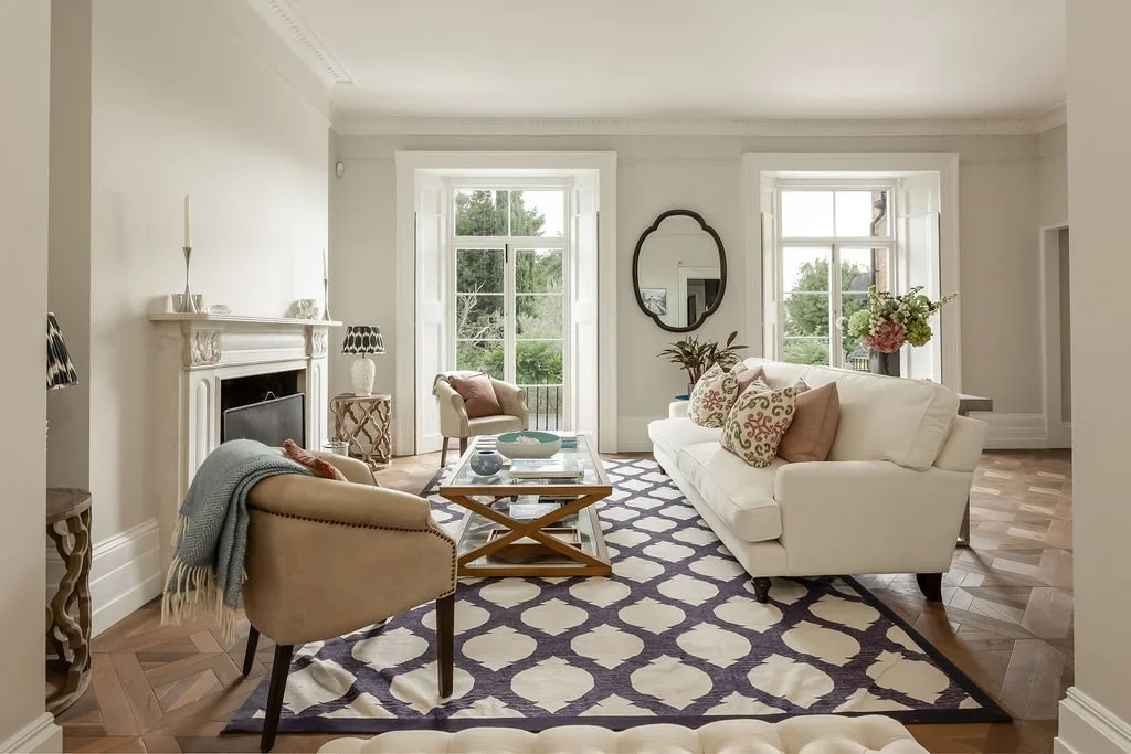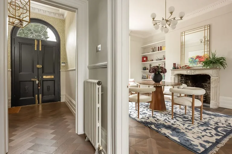It's been beautifully restored whilst retaining many period features such as ceiling cornicing, sash windows with shutters, parquet flooring and bespoke joinery, combining to create a beautiful space.