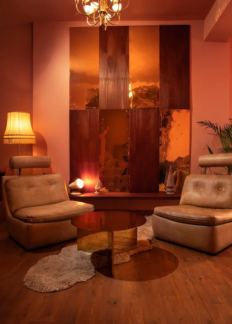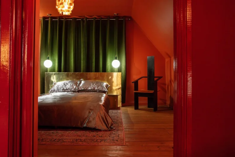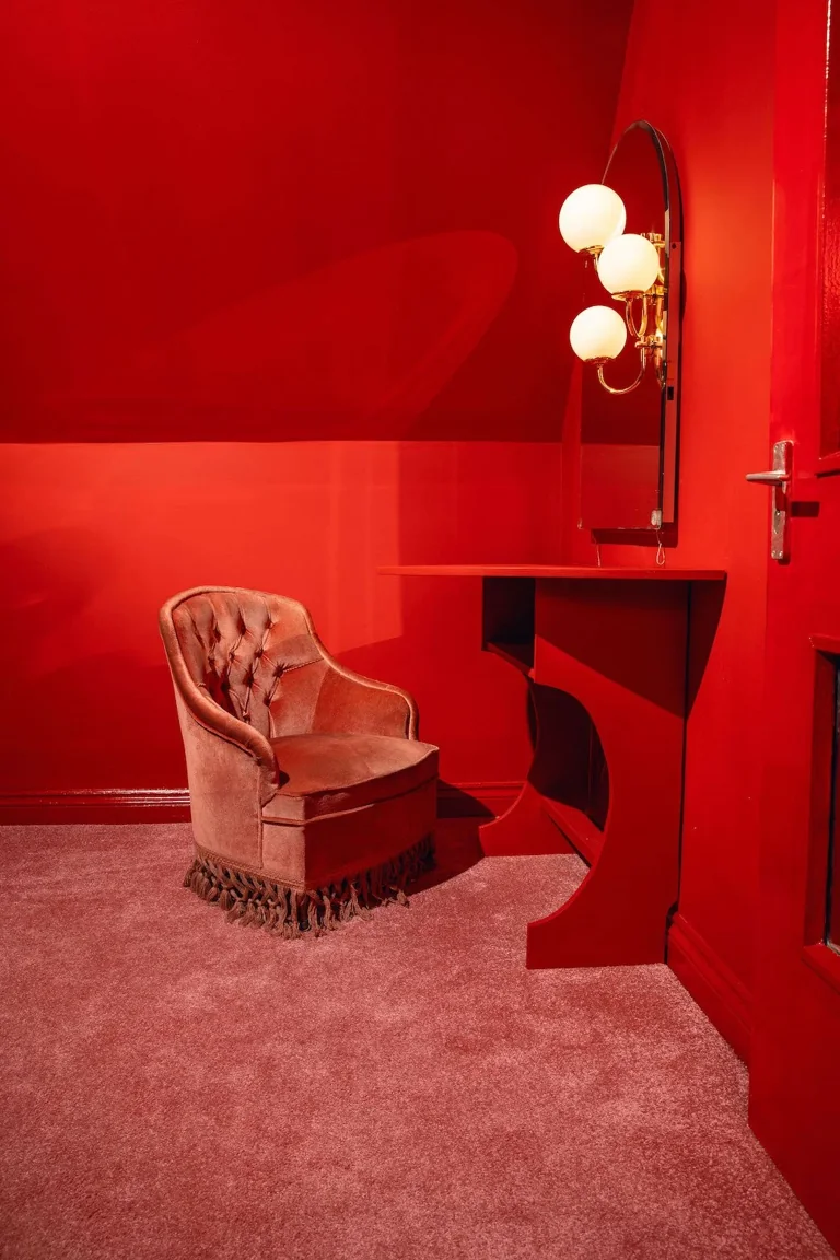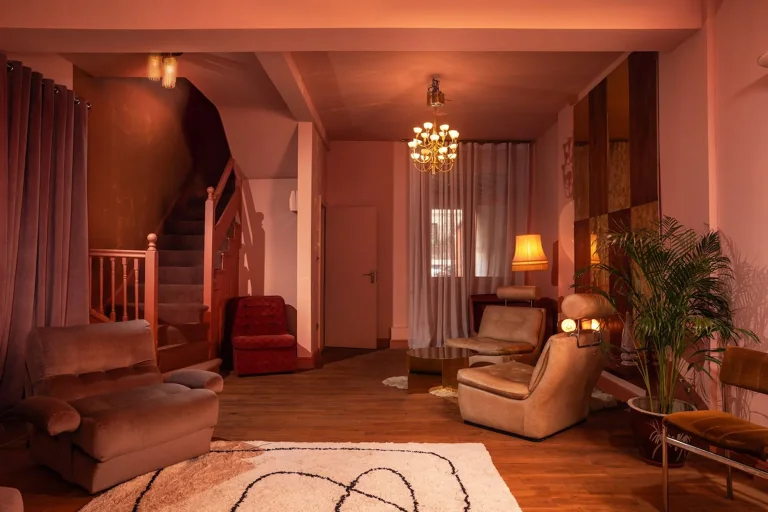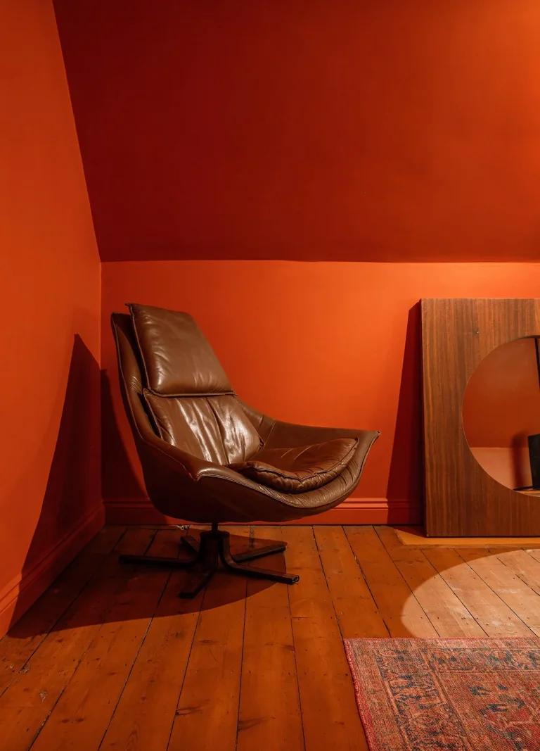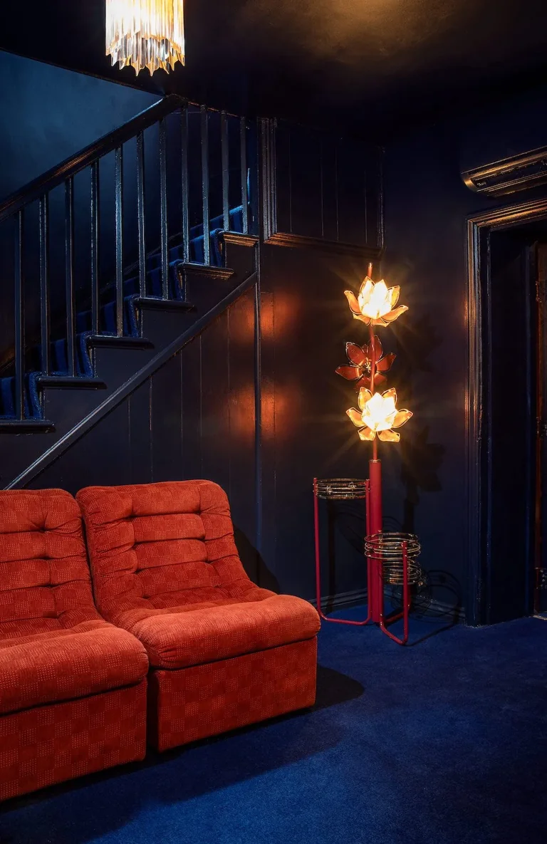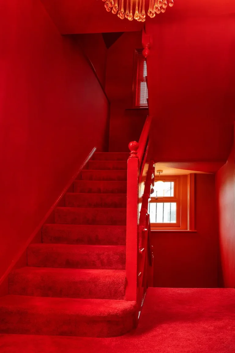 A four-story house in East London designed to provide a wide range of shooting options, featuring unique and statement pieces of furniture, lighting, and art from the 1950s, 60s, 70s, and 80s.