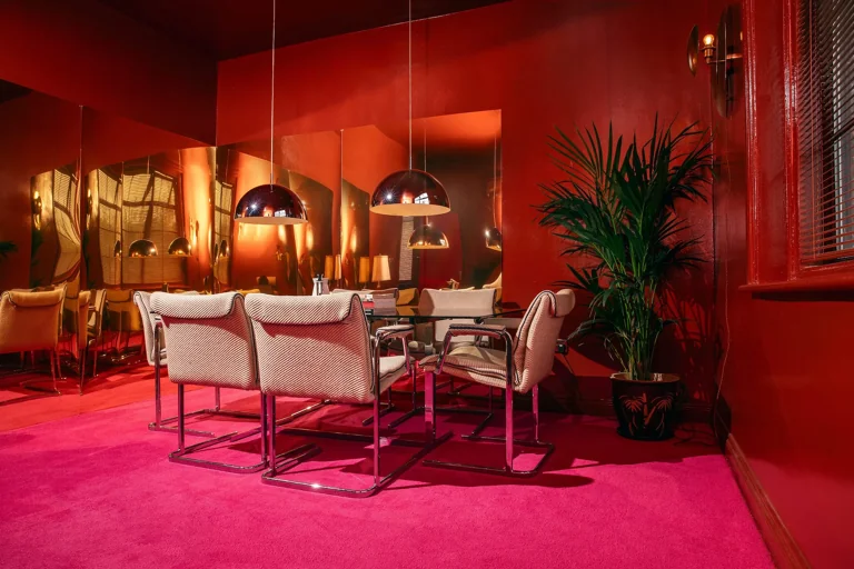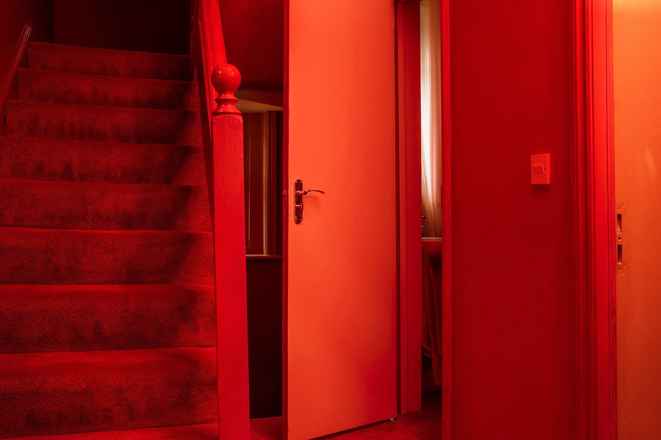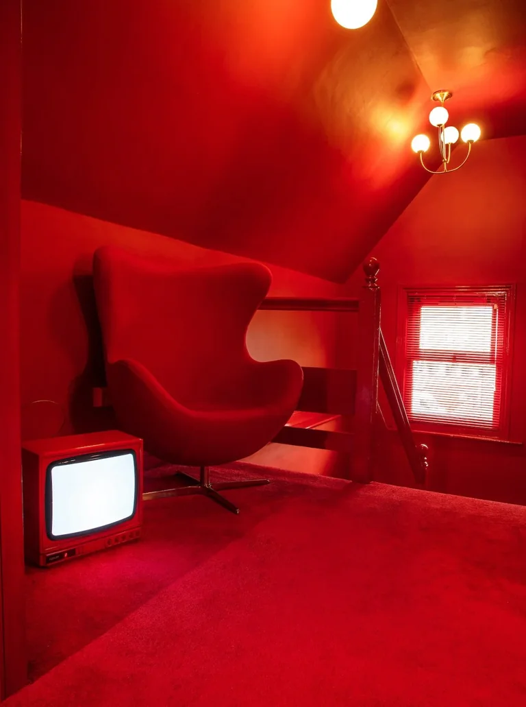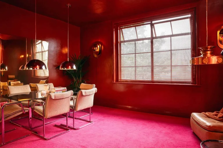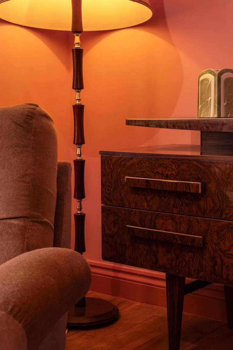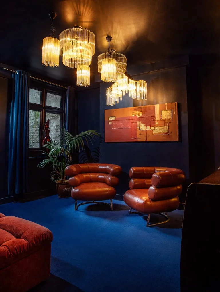 A four-story house in East London designed to provide a wide range of shooting options, featuring unique and statement pieces of furniture, lighting, and art from the 1950s, 60s, 70s, and 80s.
