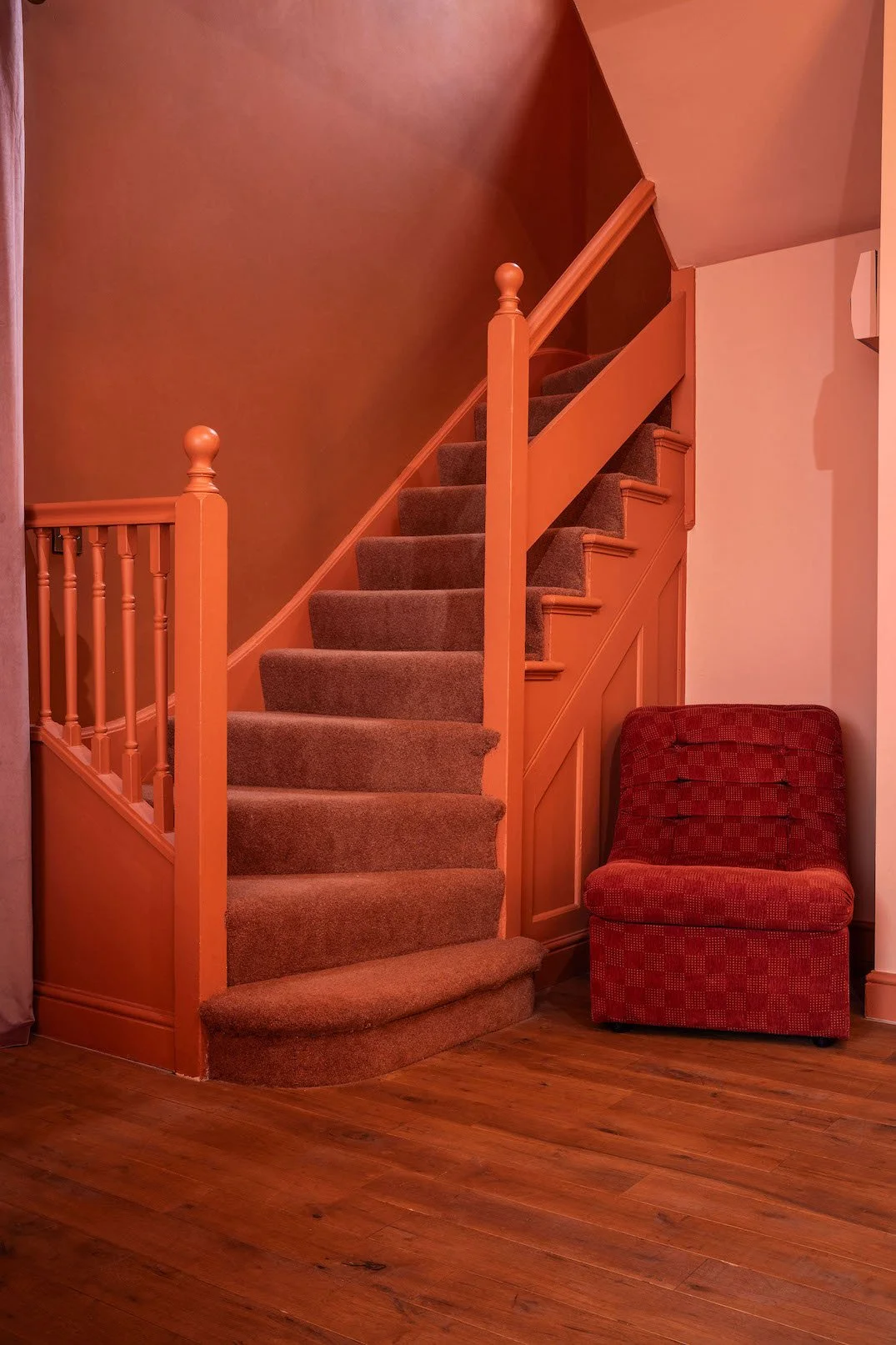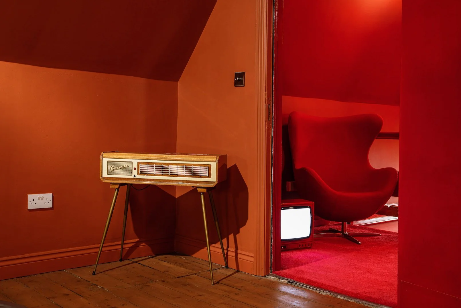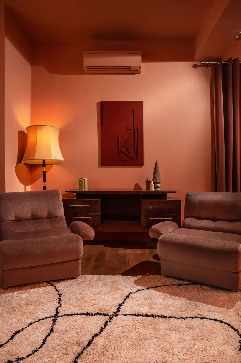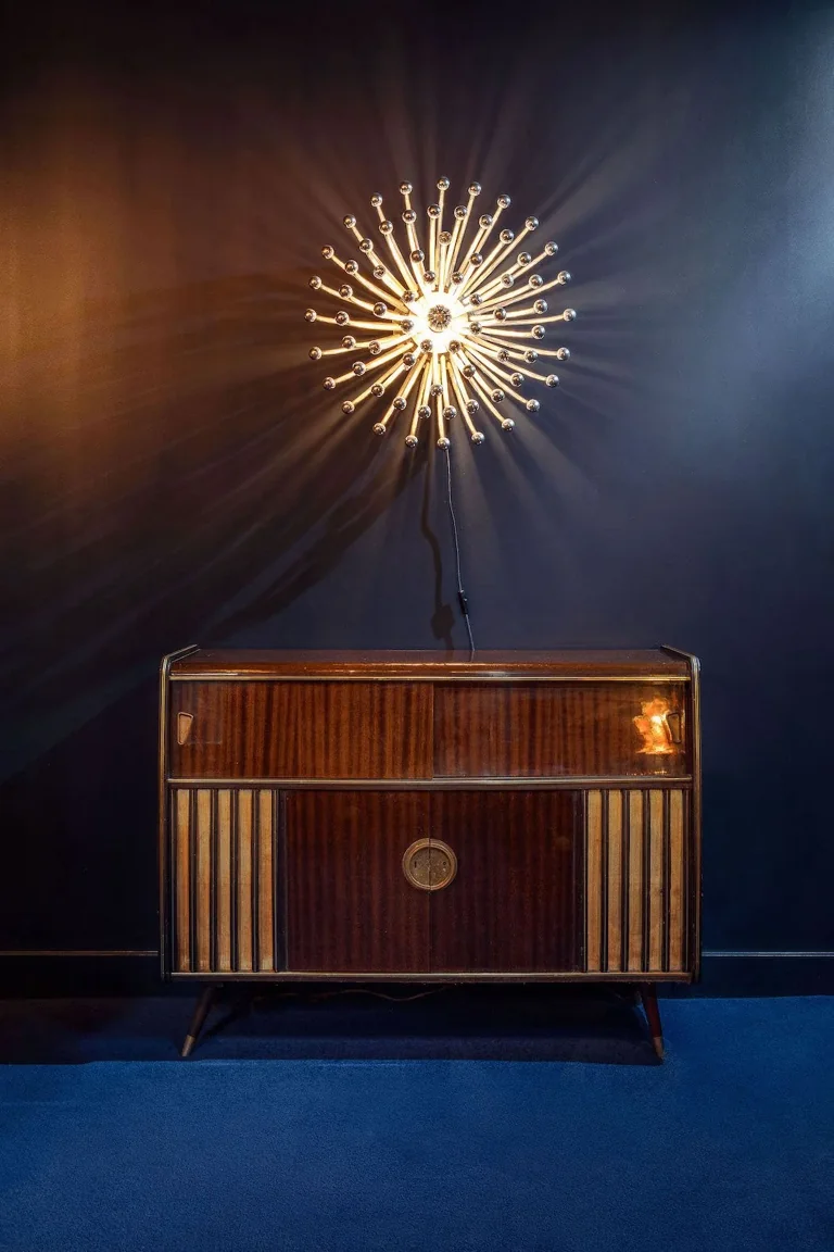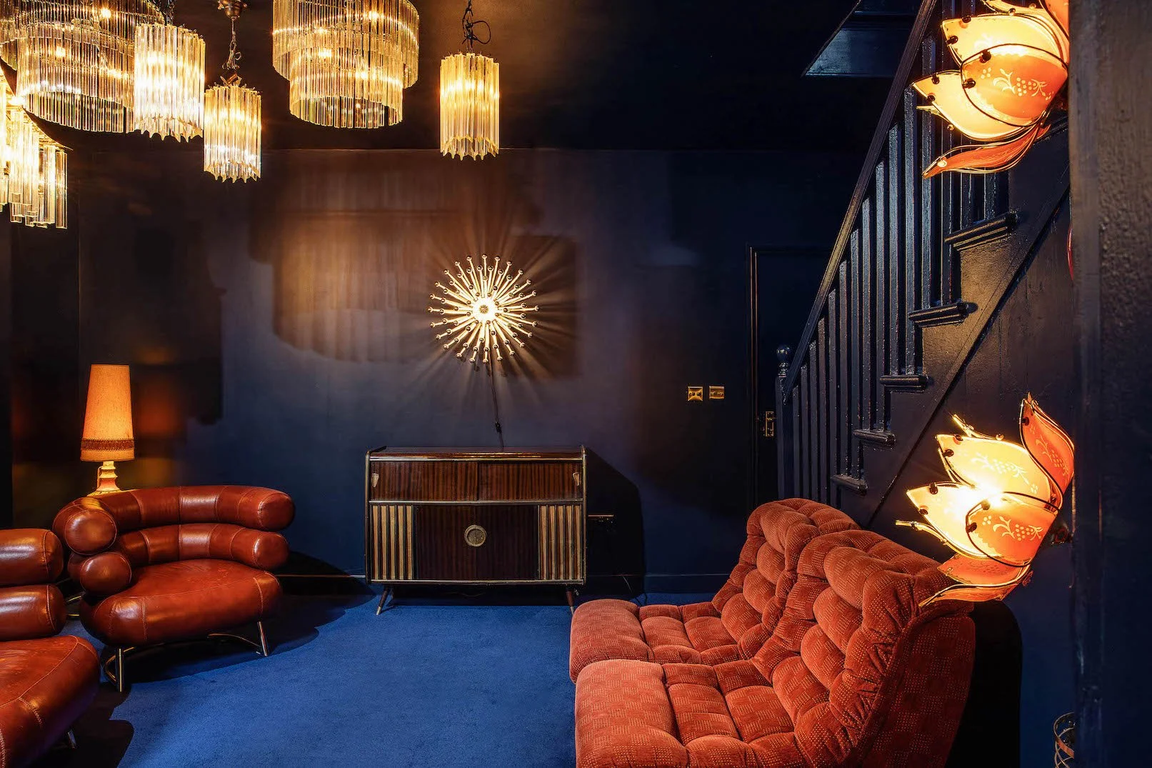 A four-story house in East London designed to provide a wide range of shooting options, featuring unique and statement pieces of furniture, lighting, and art from the 1950s, 60s, 70s, and 80s.