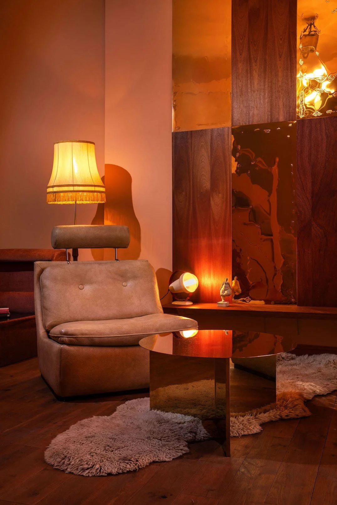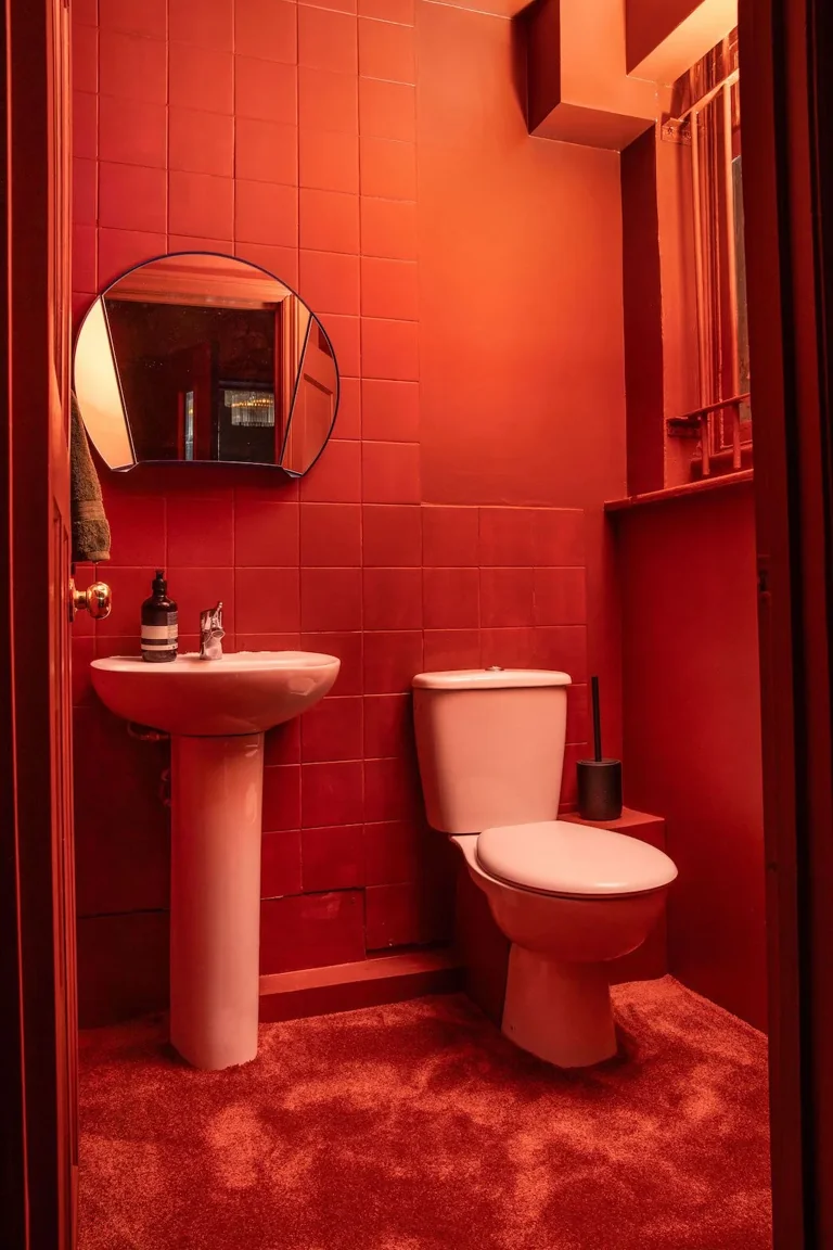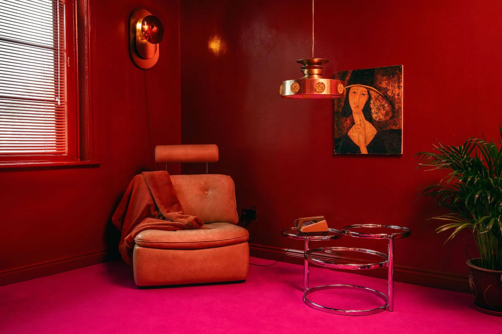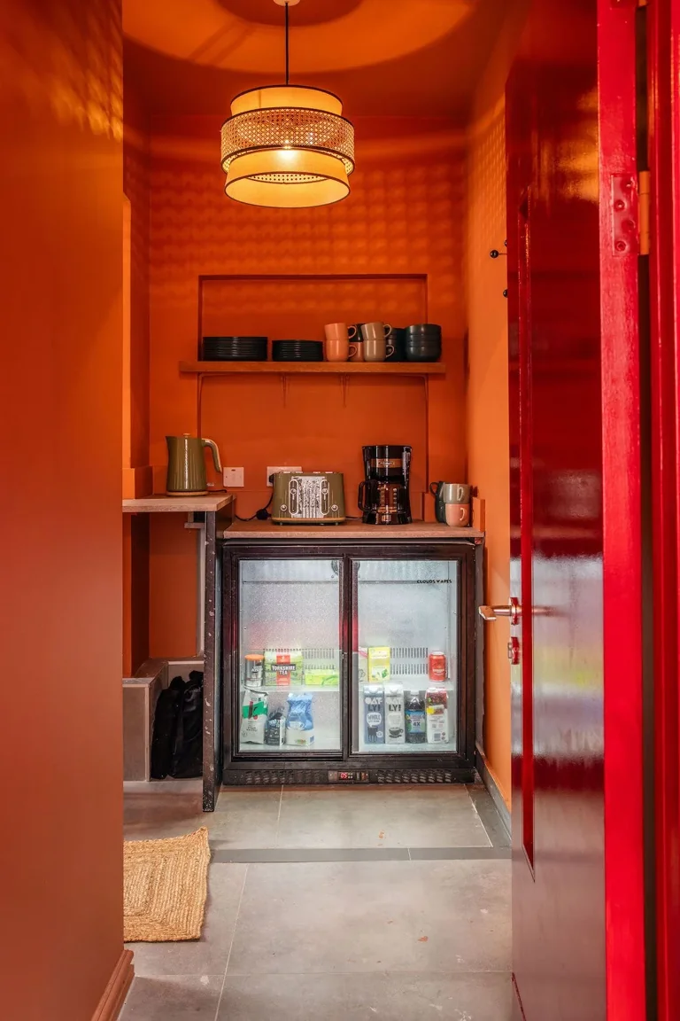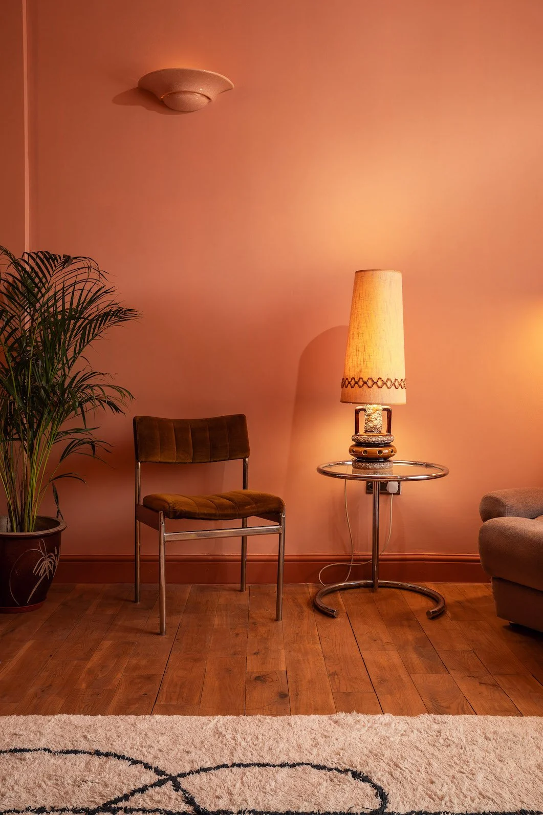 A four-story house in East London designed to provide a wide range of shooting options, featuring unique and statement pieces of furniture, lighting, and art from the 1950s, 60s, 70s, and 80s.