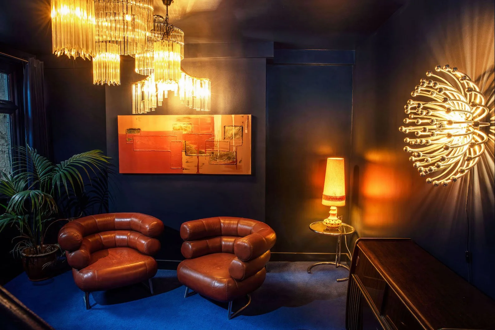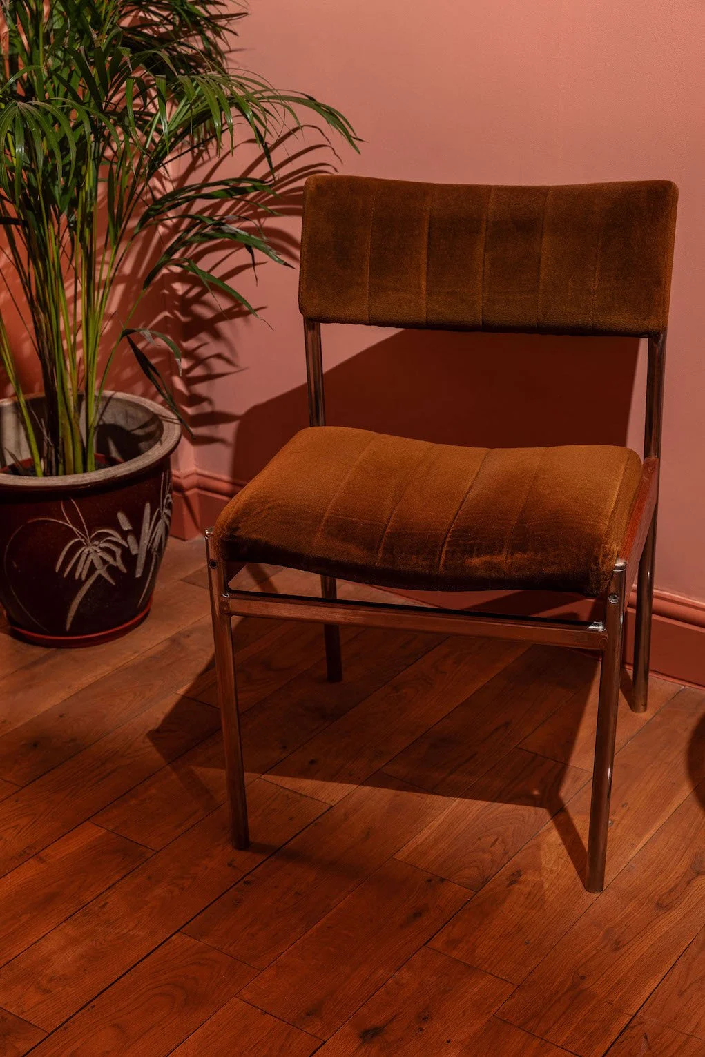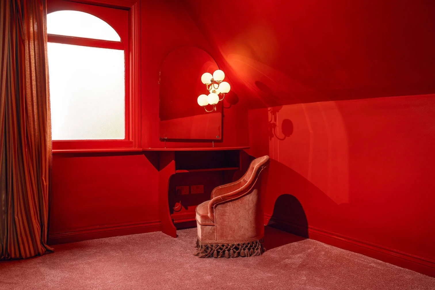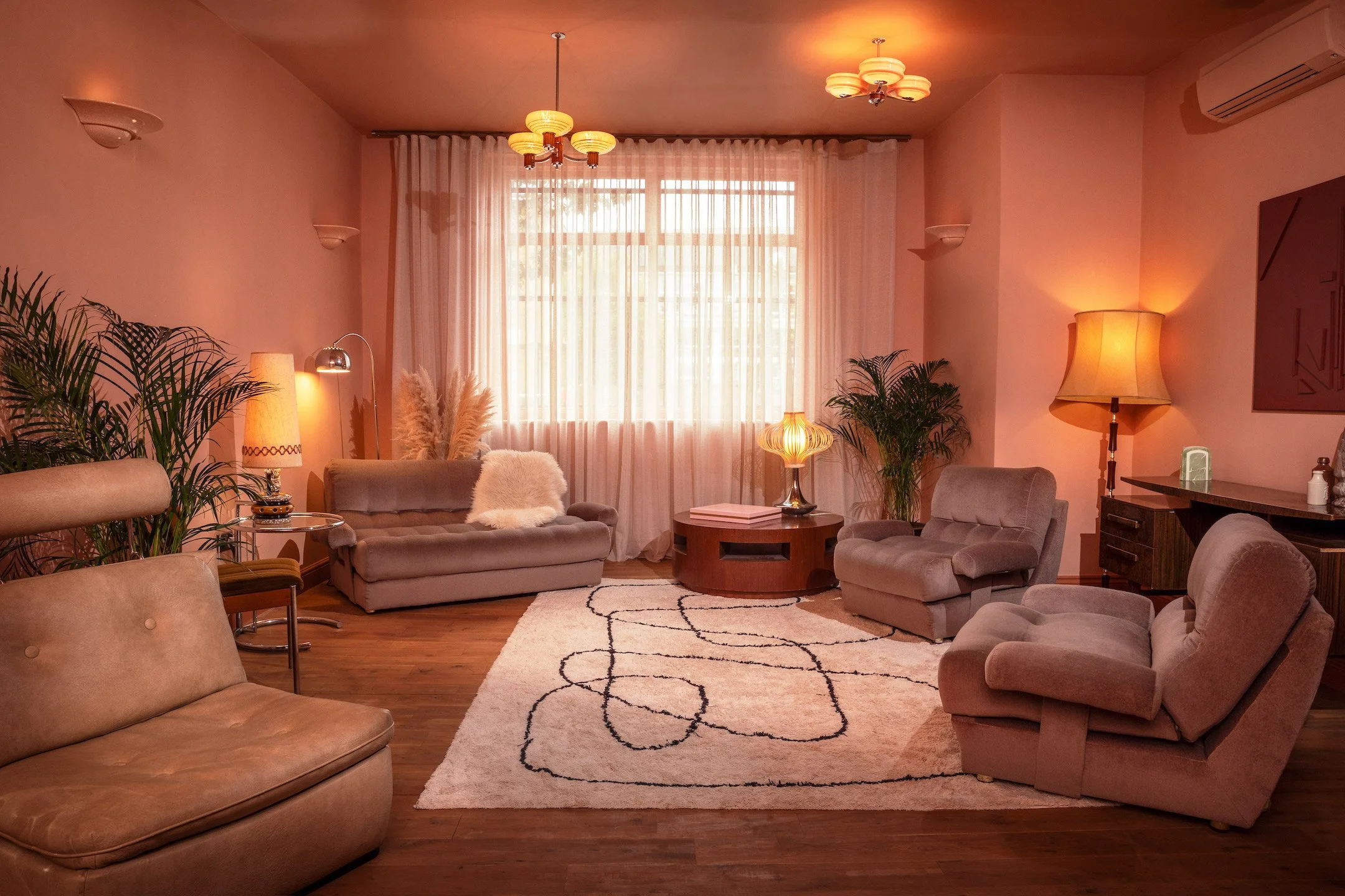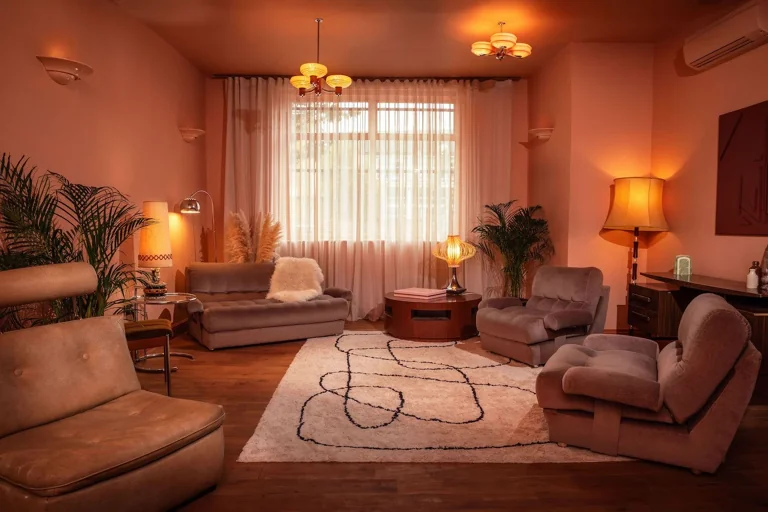 A four-story house in East London designed to provide a wide range of shooting options, featuring unique and statement pieces of furniture, lighting, and art from the 1950s, 60s, 70s, and 80s.