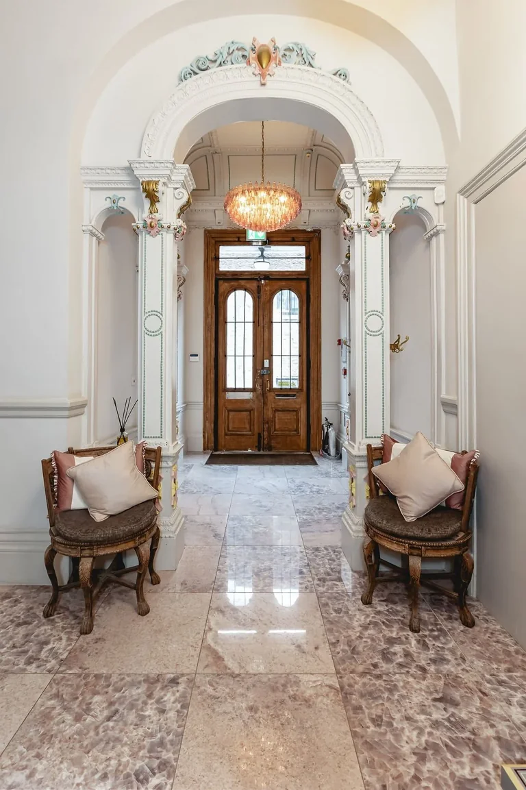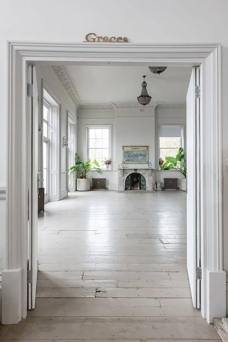 7 Bedroom shoot and stay with gorgeous individually styled rooms each offering king size beds. Overlooking Southamptons Royal Pier, Graces is a beautiful Grade II listed Victorian townhouse exclusively available for location shoots and events. A regal, 4 storey building it sits overlooking the seafront. Original features abound throughout.