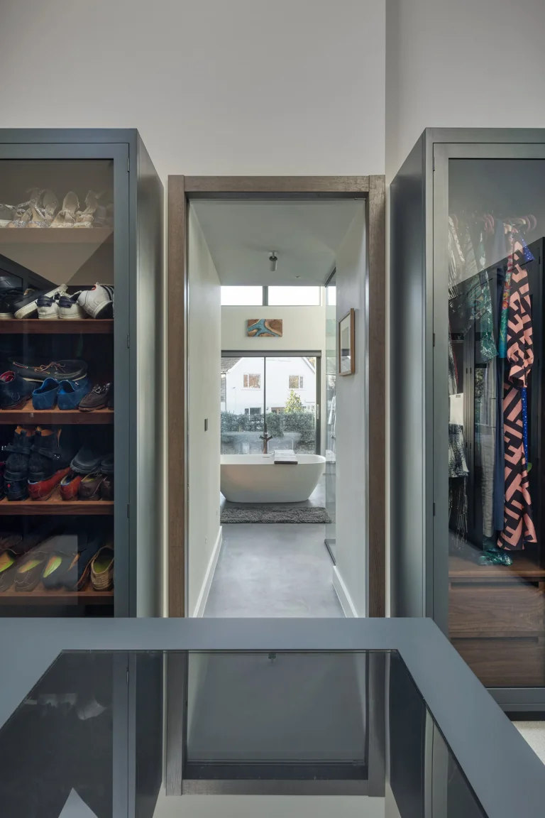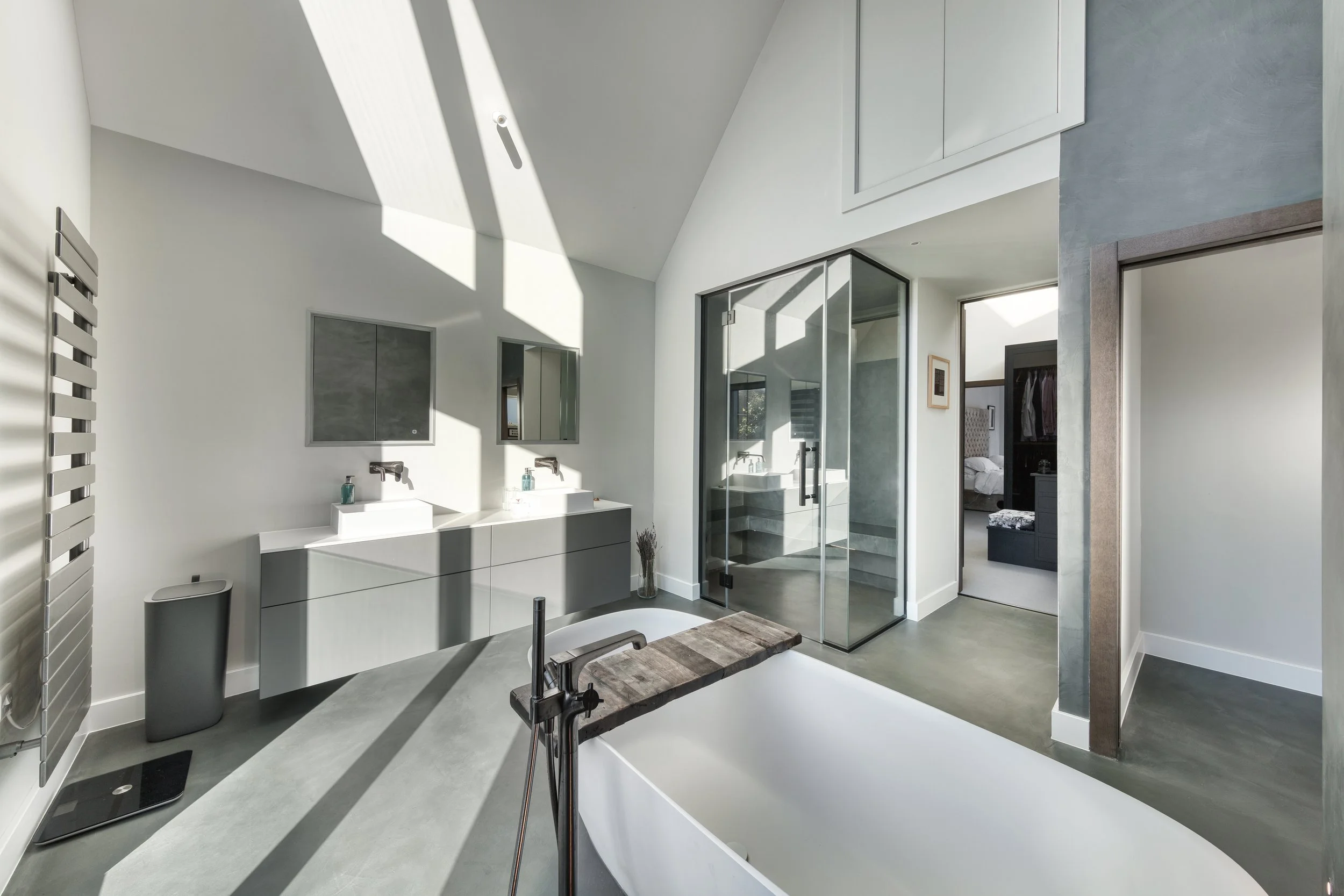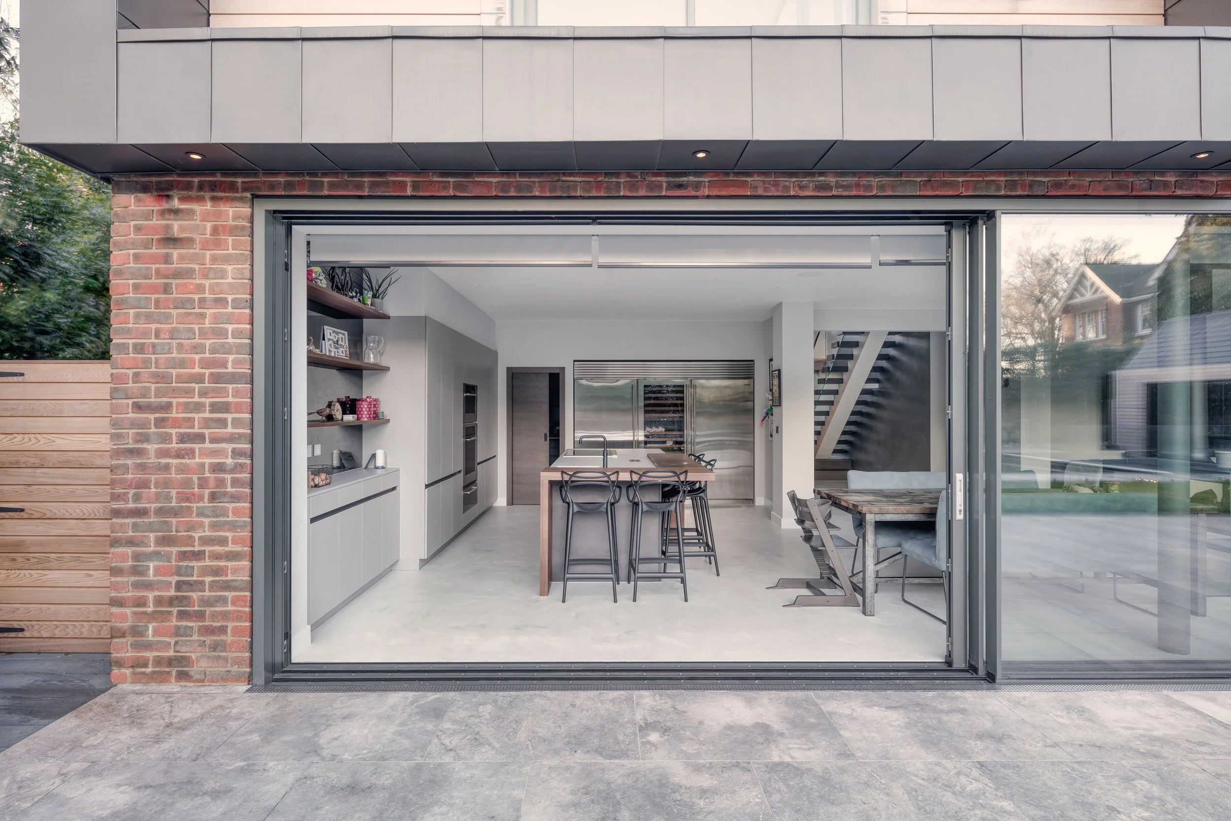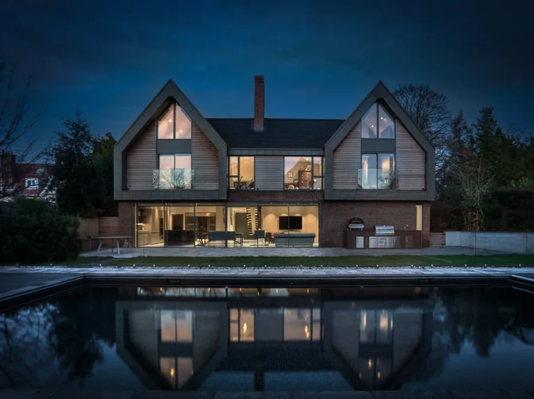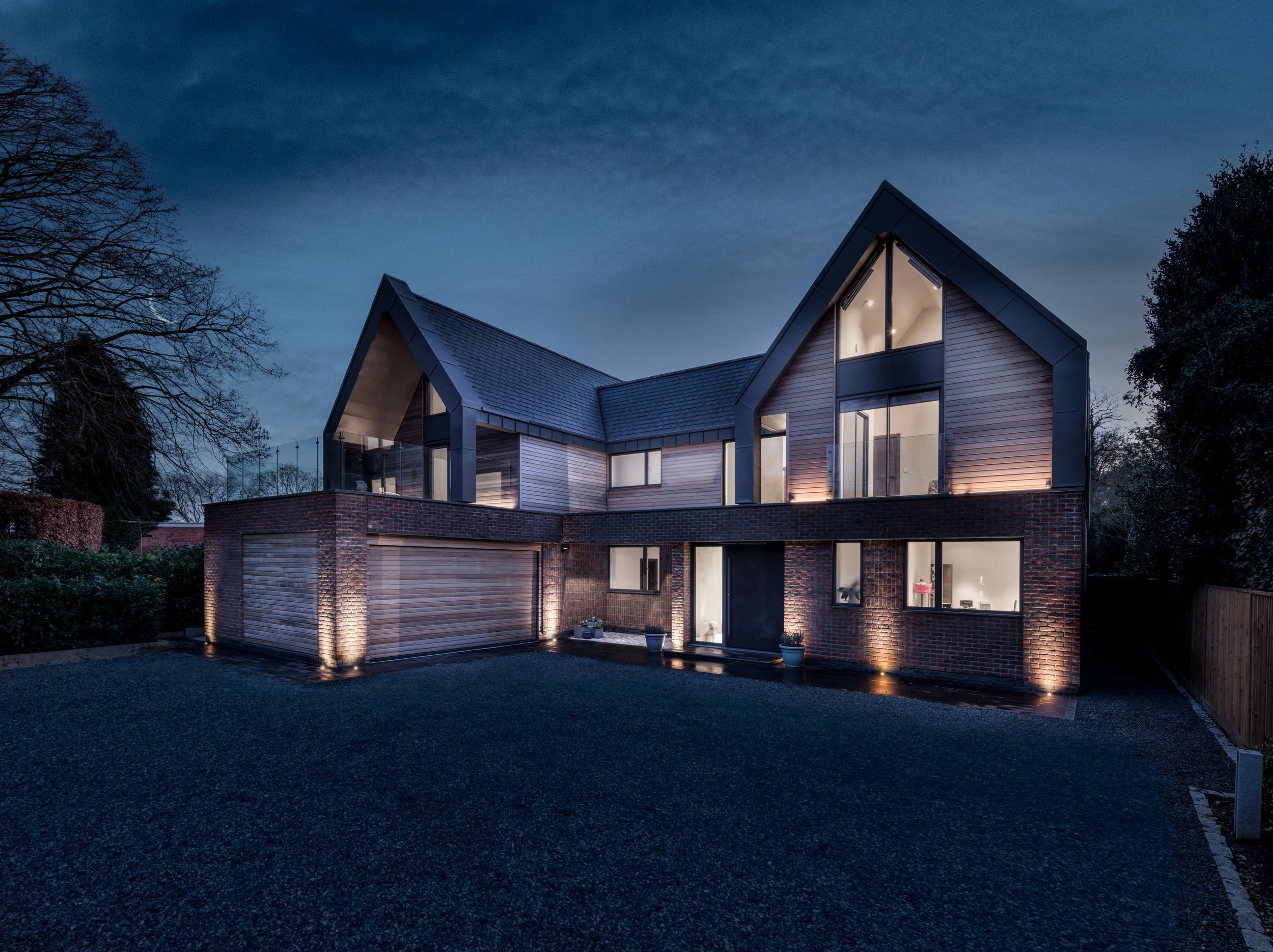 This contemporary 4-bedroom family residence seamlessly blends into its surroundings while also contributing to the local arts and crafts aesthetic. Features a combination of Hampshire Stock Bricks, timber, zinc, and glass elements. This architectural blend creates an intriguing contrast and a playful patchwork of textures and materials.