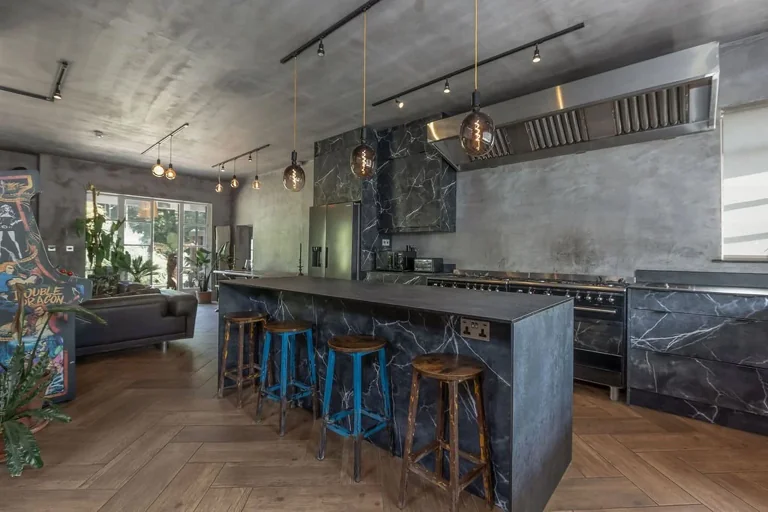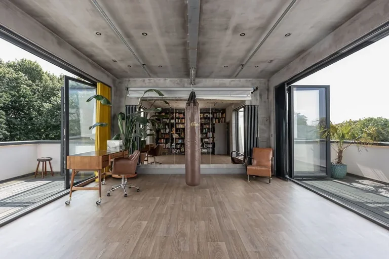 This remarkable property is an original 1920s Art Deco building that had fallen into disrepair but has been meticulously restored to its former glory. While the exterior faithfully reflects the architect's original vision, the interior has undergone extensive remodeling. The result is a striking contrast: a classic Art Deco façade complemented by a bold, Brutalist interior design. This unique blend of styles creates a captivating space that harmoniously marries historical elegance with contemporary flair.