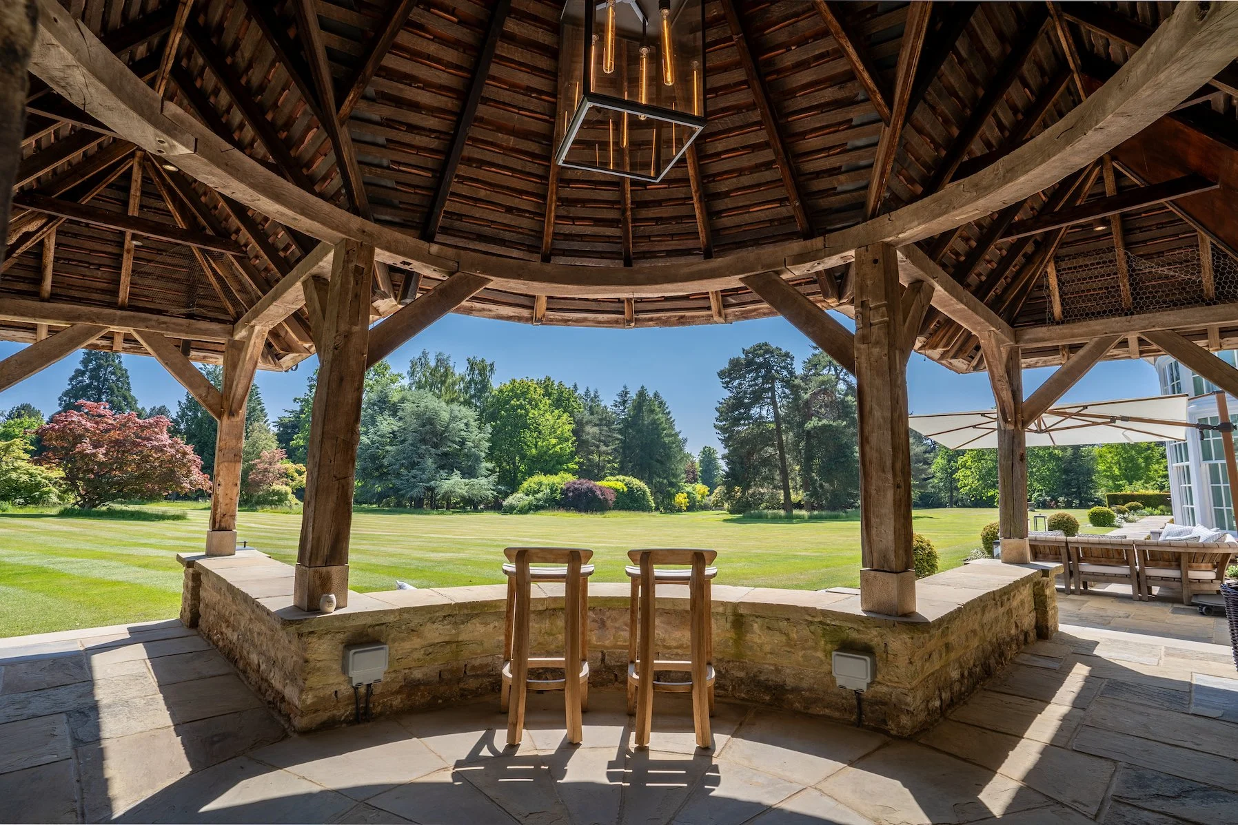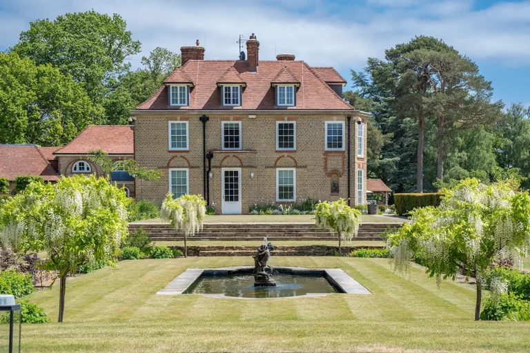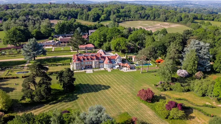 The sheer magnitude of this expansive country estate has to be seen to be believed. Situated in Surrey, the house was built in 1910 of local Bargate stone, it faces due south and stands on slightly higher ground than the garden that surrounds it.