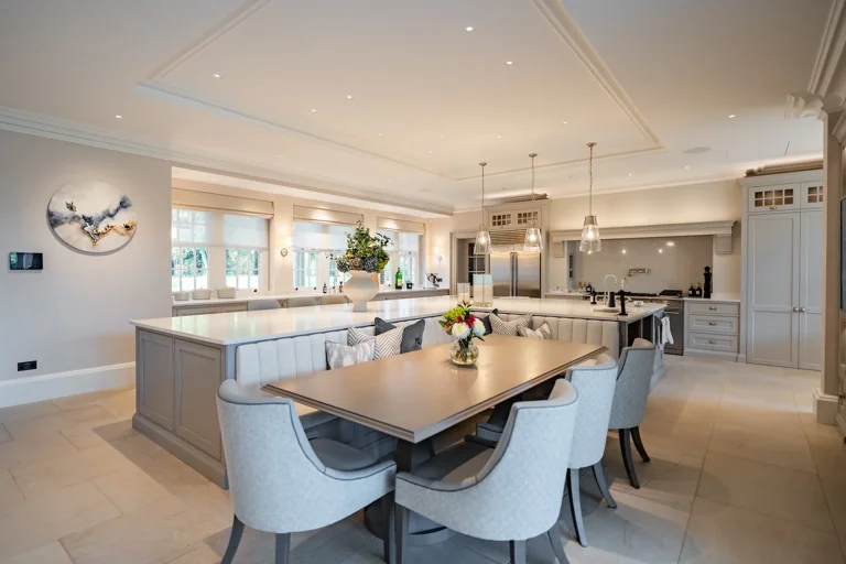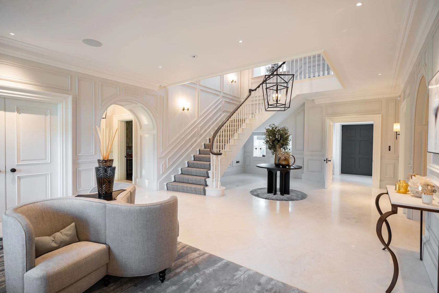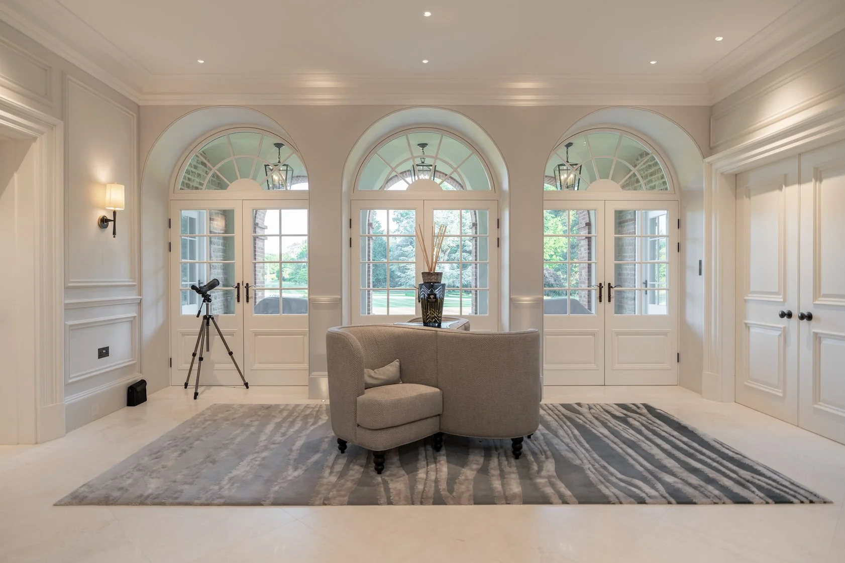 Set amongst sprawling grounds, with a Jekyll designed garden, it offers a plethora of options for shoots and filming. This extraordinary country house epitomises elegance and grandeur. The interiors exude opulence and serenity, adorned with a colour palette consisting of soft greys and neutrals. Everything has been furnished and finished to an extremely high standard and pays homage to the grandiose mansions found in the United States.