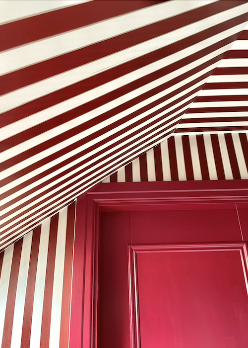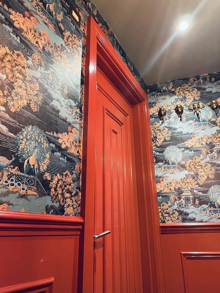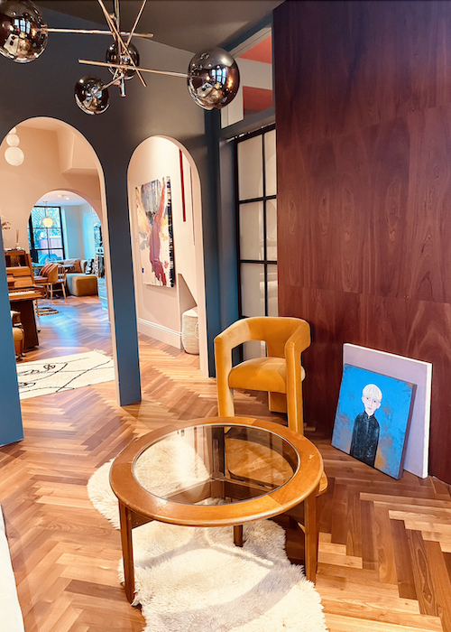 The north-facing front of the property is ideal for filming and photography, with the shutters providing blackout capabilities that can be easily adjusted with lighting. The sophisticated appeal of the parquet flooring complements the Memphis-style arches and statement furniture pieces, striking a perfect balance between old-world charm and modern design.