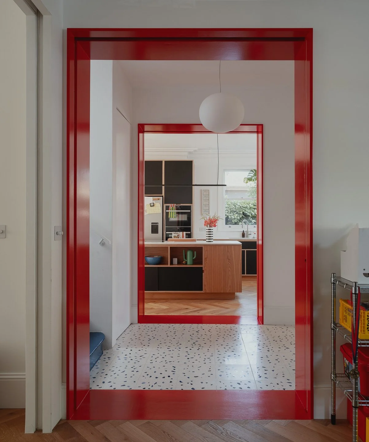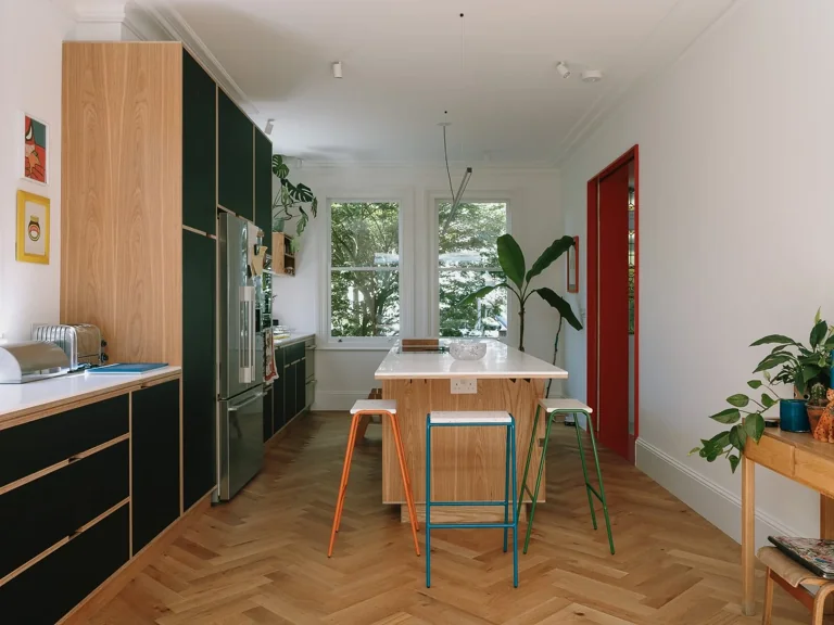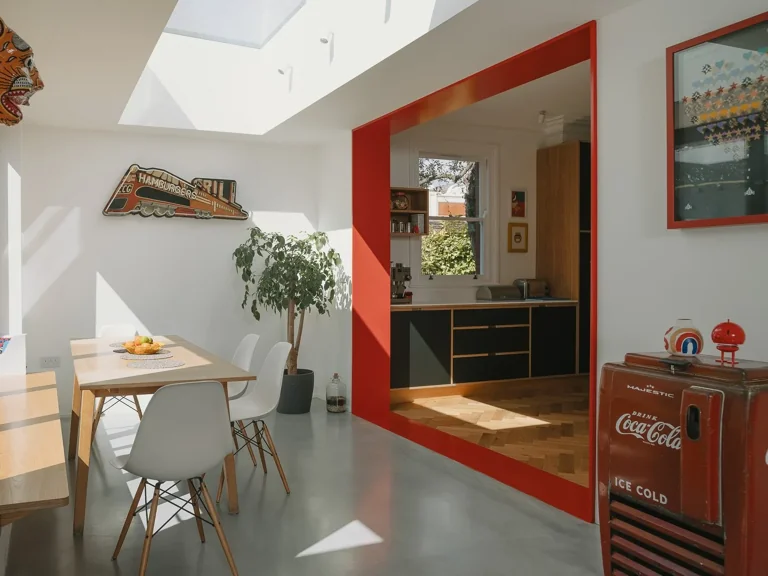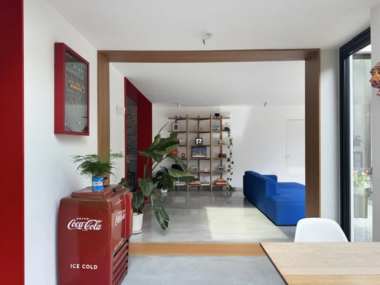 A striking three-storey residence that masterfully integrates architectural innovation with a playful spirit. The house offers a plethora of visual stimuli through its vibrant interiors, diverse textures, and a fluid relationship between indoor and outdoor spaces.