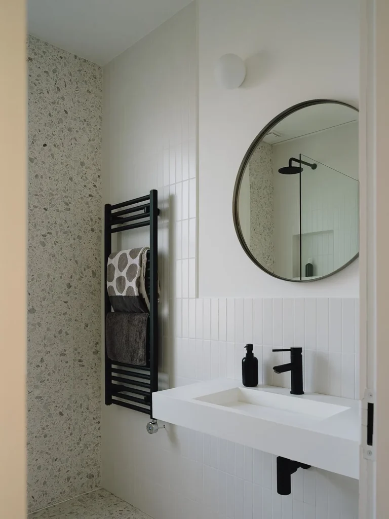 Departing from traditional floor plans, the design employs wide openings facilitating a dynamic flow between rooms, inviting exploration and fostering a sense of movement. Each space is imbued with its own unique character, achieved through a careful selection of finishes that enhance depth and individuality without overwhelming the senses.
