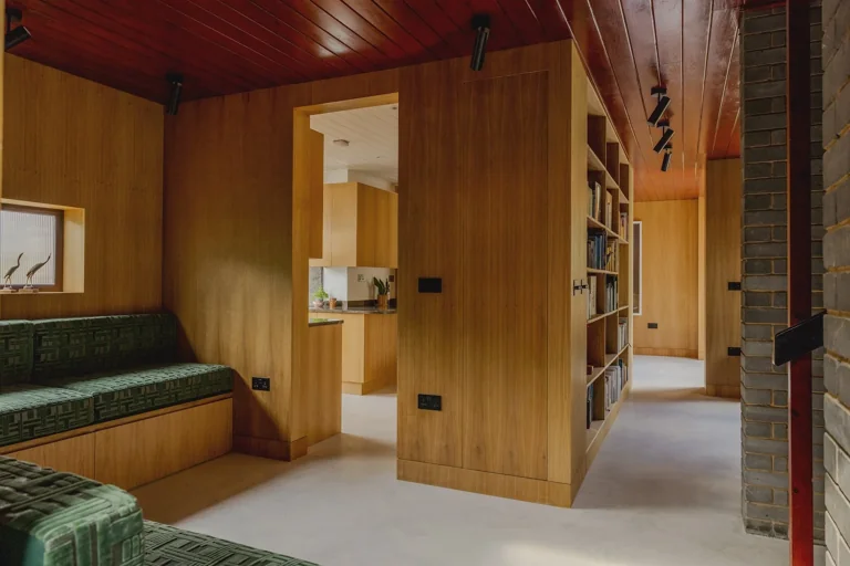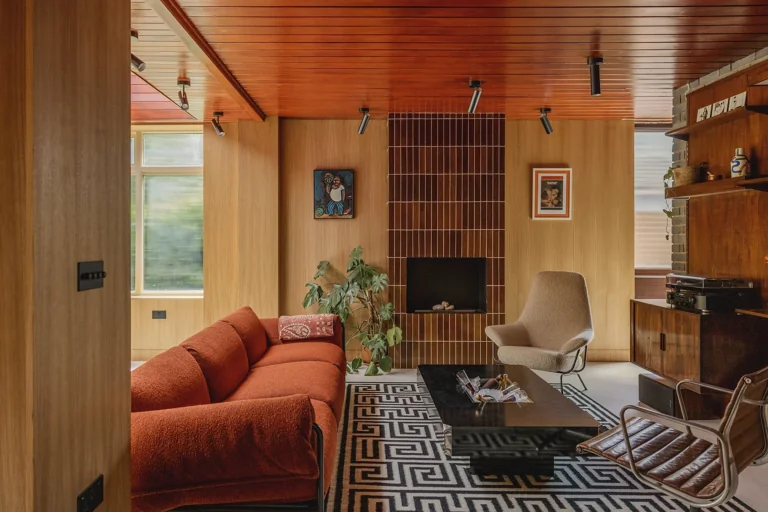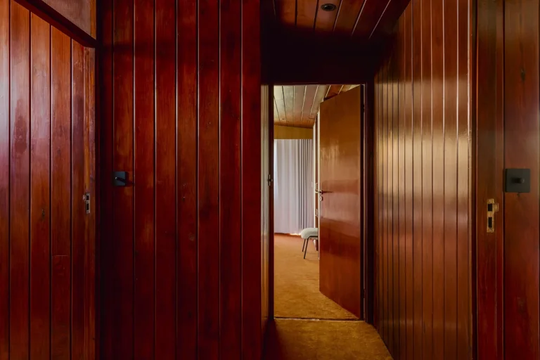 Constructed in 1961, this residence exemplifies the essence of modernist architecture, featuring a distinctive butterfly roof that gracefully spans two expansive floors.