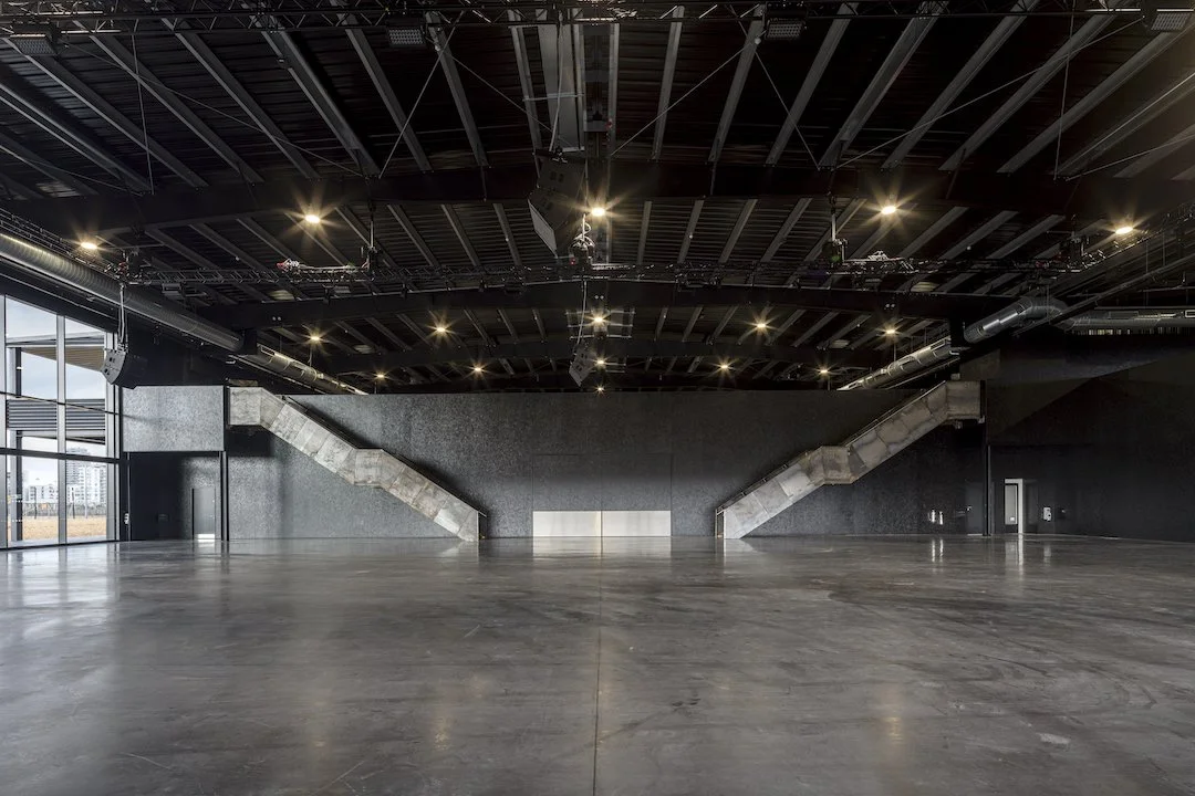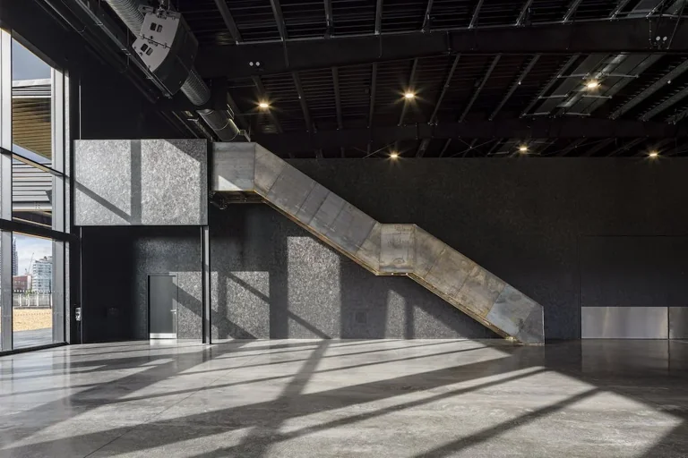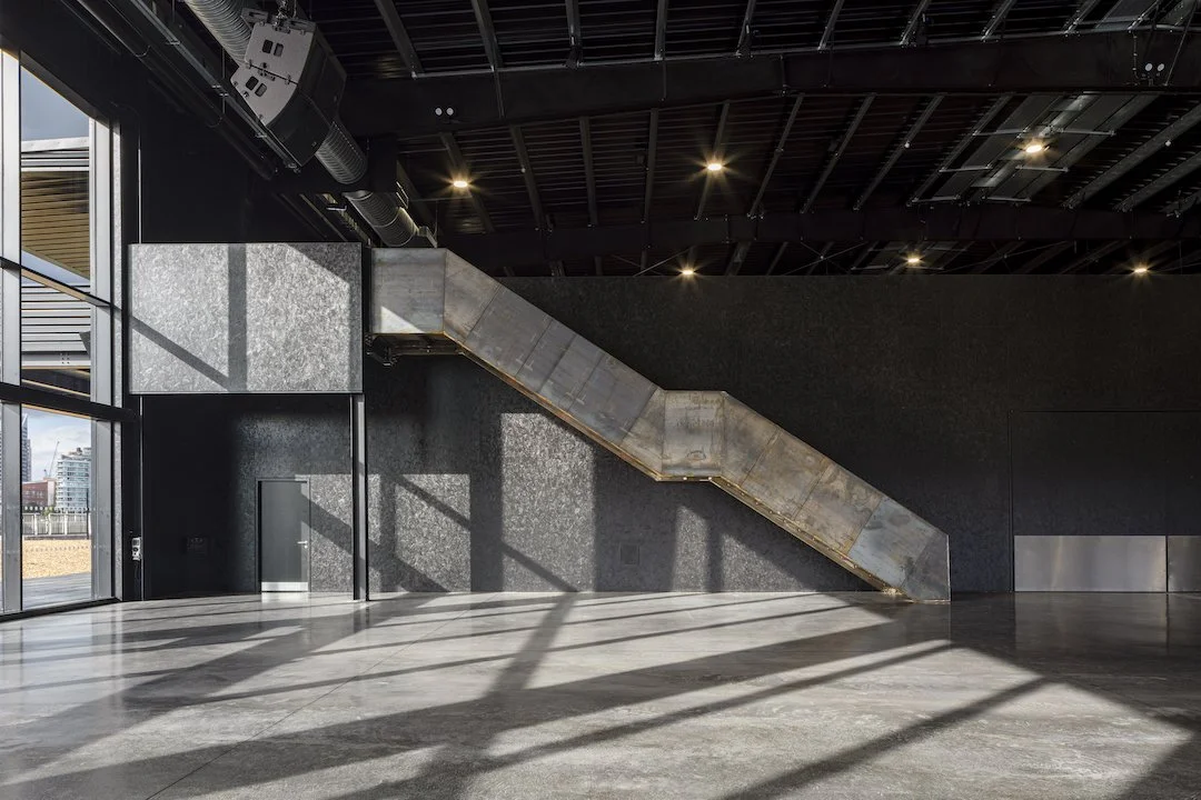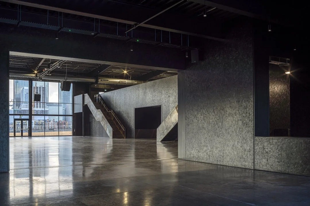 Built in 2019, the steel structure has 2 vast and customizable spaces; Space 1 has floor-to-ceiling riverside views of the Thames while Space 2 is a fully configurable ‘black box’. The building’s architecture reflects the industrial history of Greenwich.