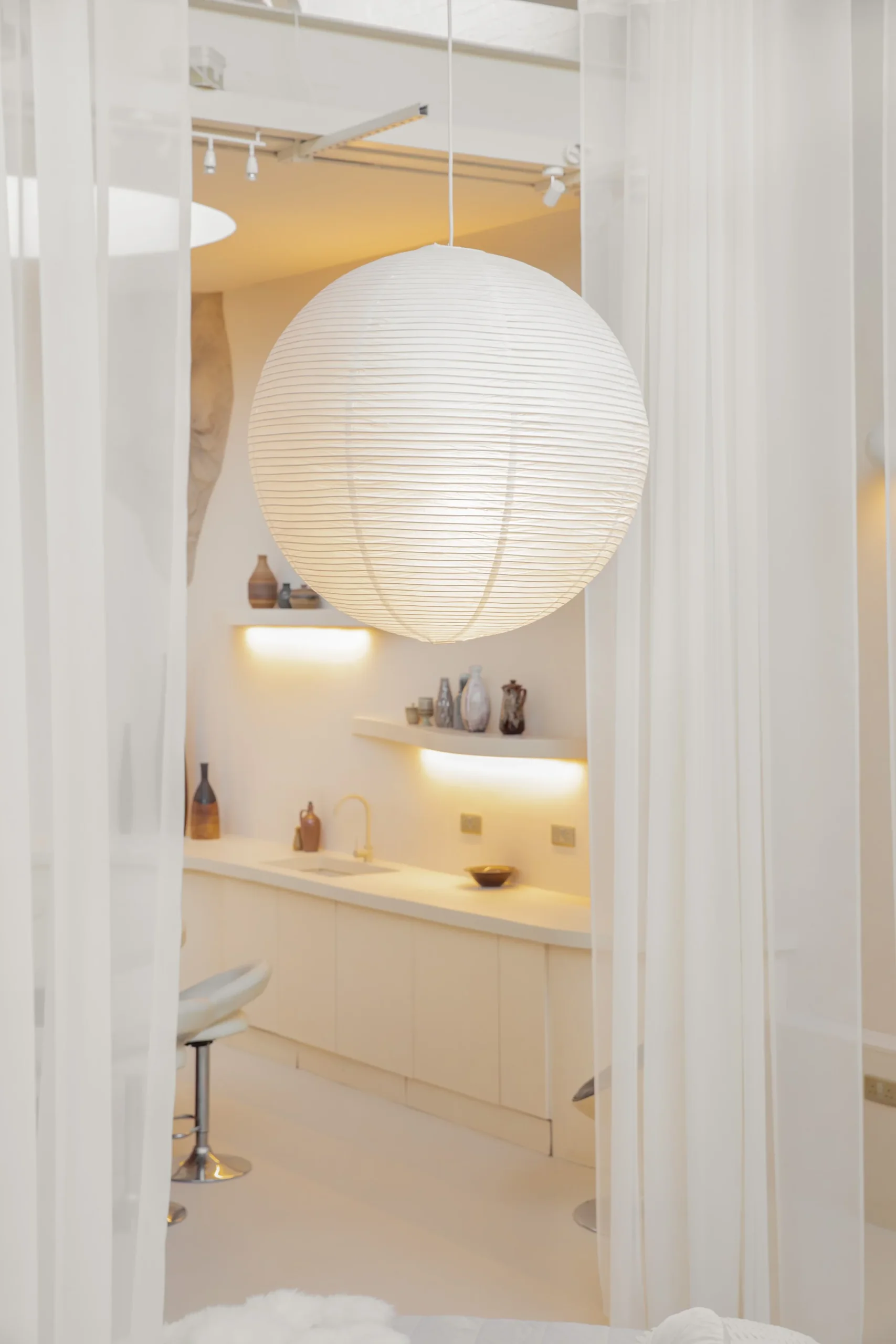 In addition to the custom-designed furniture, the studio is adorned with original vintage pieces and props, including impressive 1960’s globe chandeliers. With its unique design elements and versatile layout, this studio provides a one-of-a-kind setting for any creative project or event.