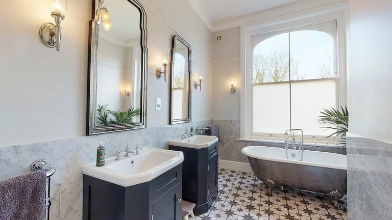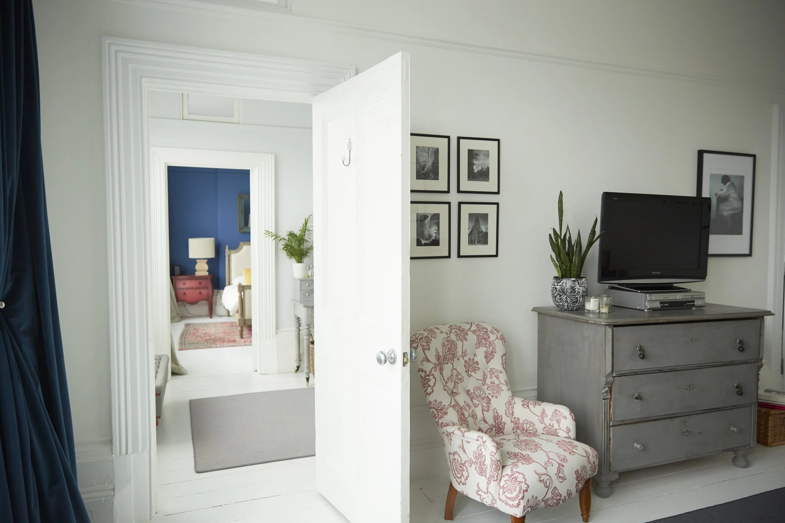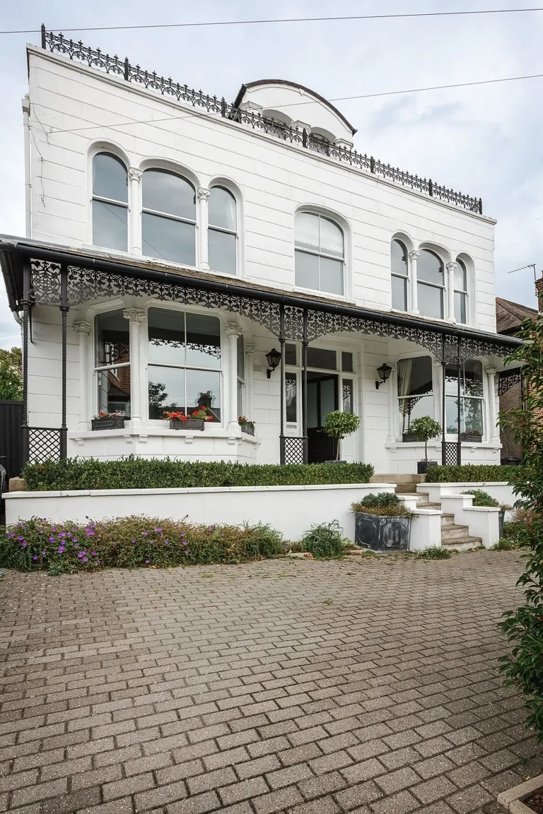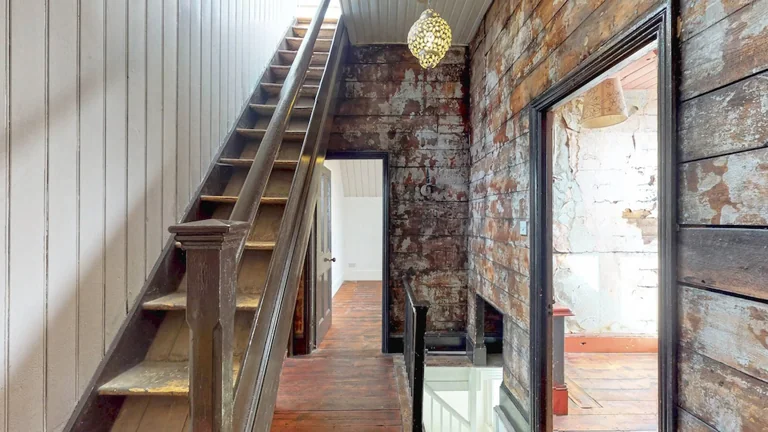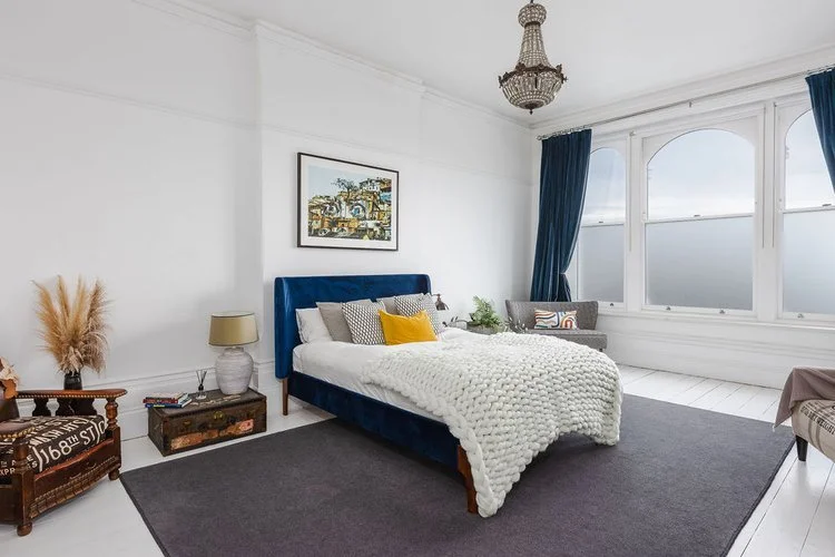 The Regency offers large shooting areas on each floor and has multiple standout features, including whole floor of ravaged distressed walls, peeling wallpaper, large windows through out, high ceilings, open fireplaces, marble counter tops and a peacock blue kitchen and plenty of adaptable spaces. Metal balconies to be expected for a Regency property.
