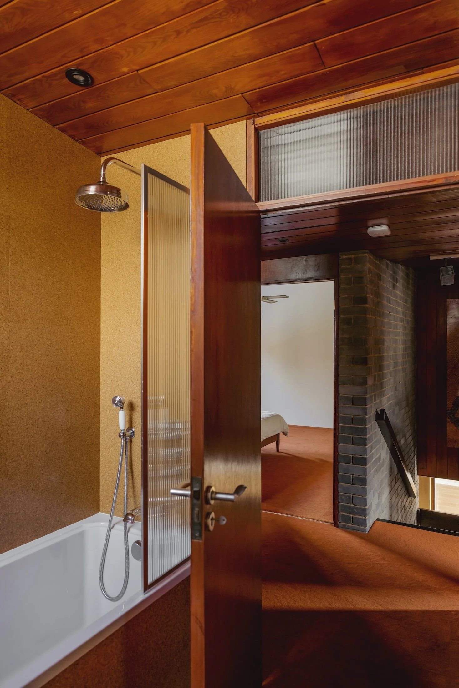 Recently restored to its original splendor, the house serves as an exceptional location for contemporary photo shoots or as a period home that beautifully reflects the design aesthetics of the 1950s, 1960s, and 1970s. The property, including its outbuildings, encompasses nearly 3,000 square feet.